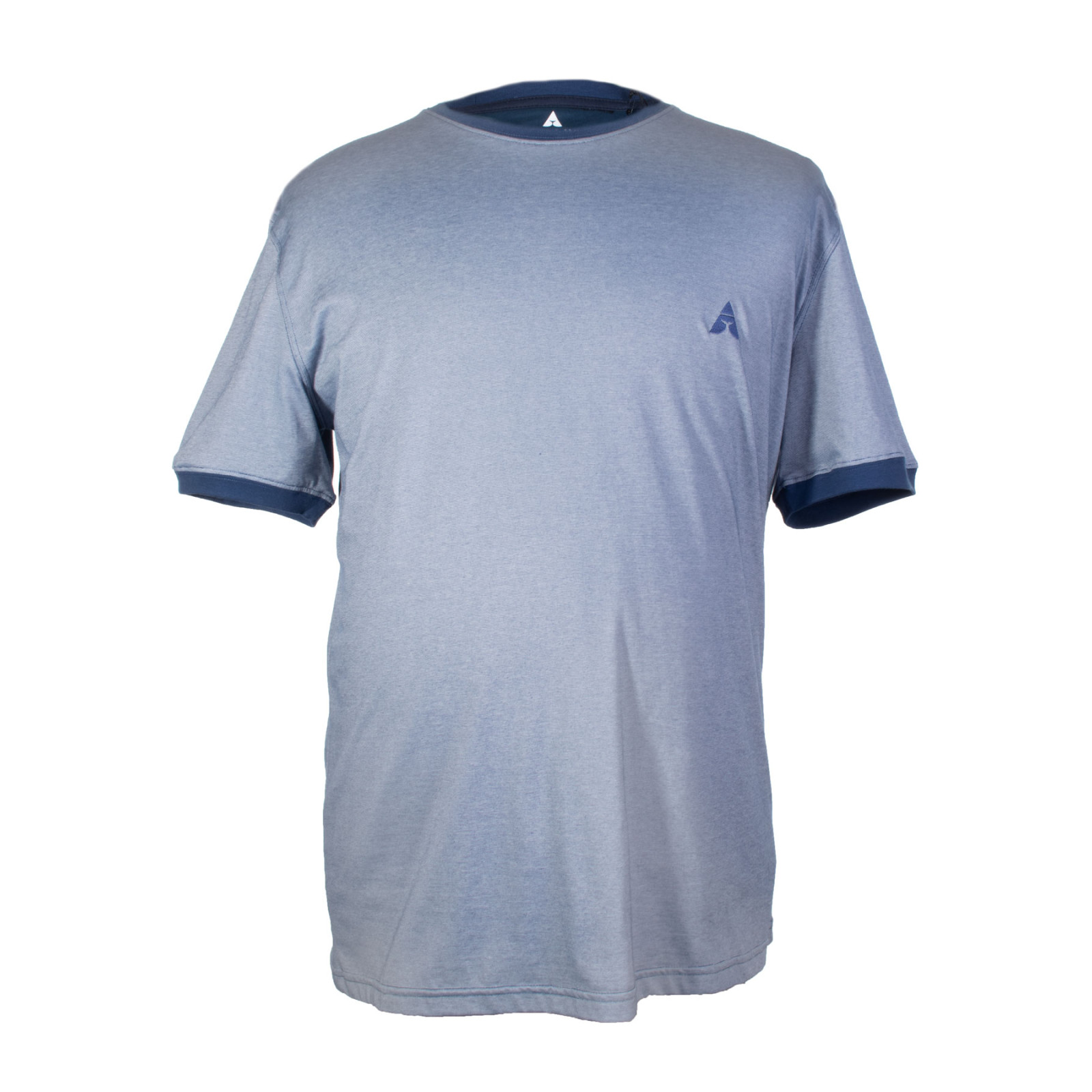 Модель из мерсеризованного хлопка в тонкую полоску, круглая горловина и манжеты на рукавах контрастного цвета, эмблема. Состав - 100%мерсеризованный хлопок
