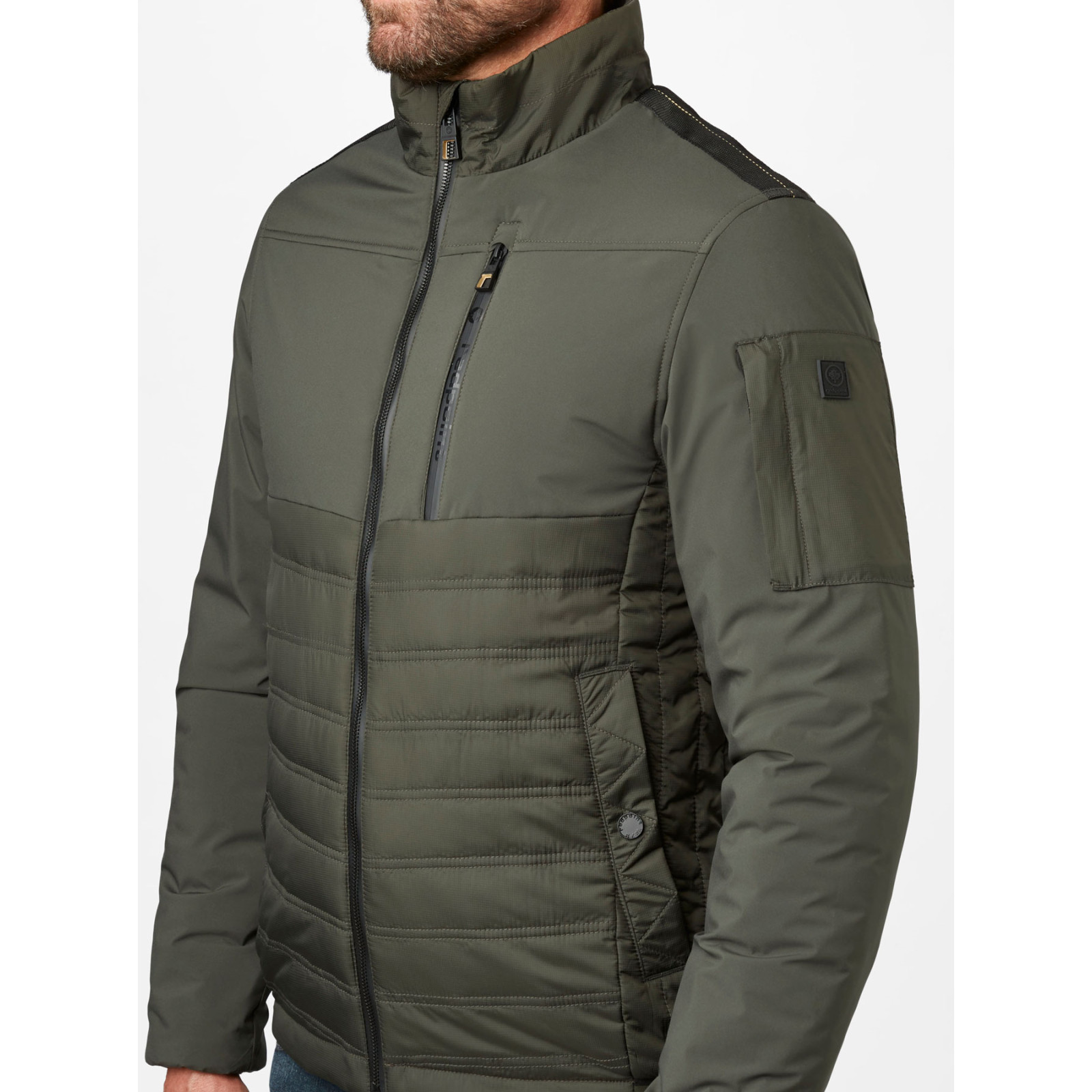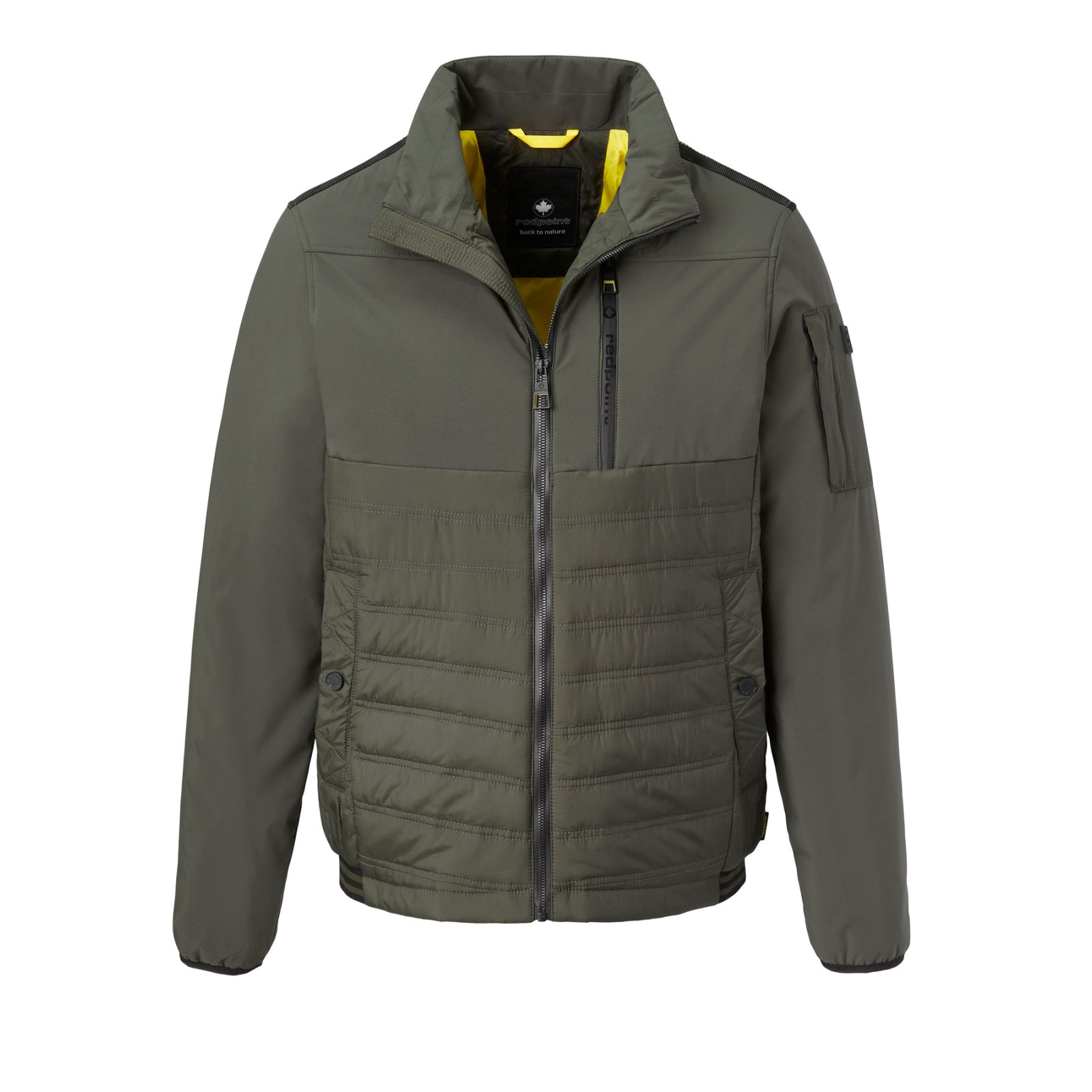 Комбинированная модель с воротником-стойкой, застежка на молнии, функционильные карманы, манжеты на рукавах и по нижнему краю. Состав - 100%полиэстер