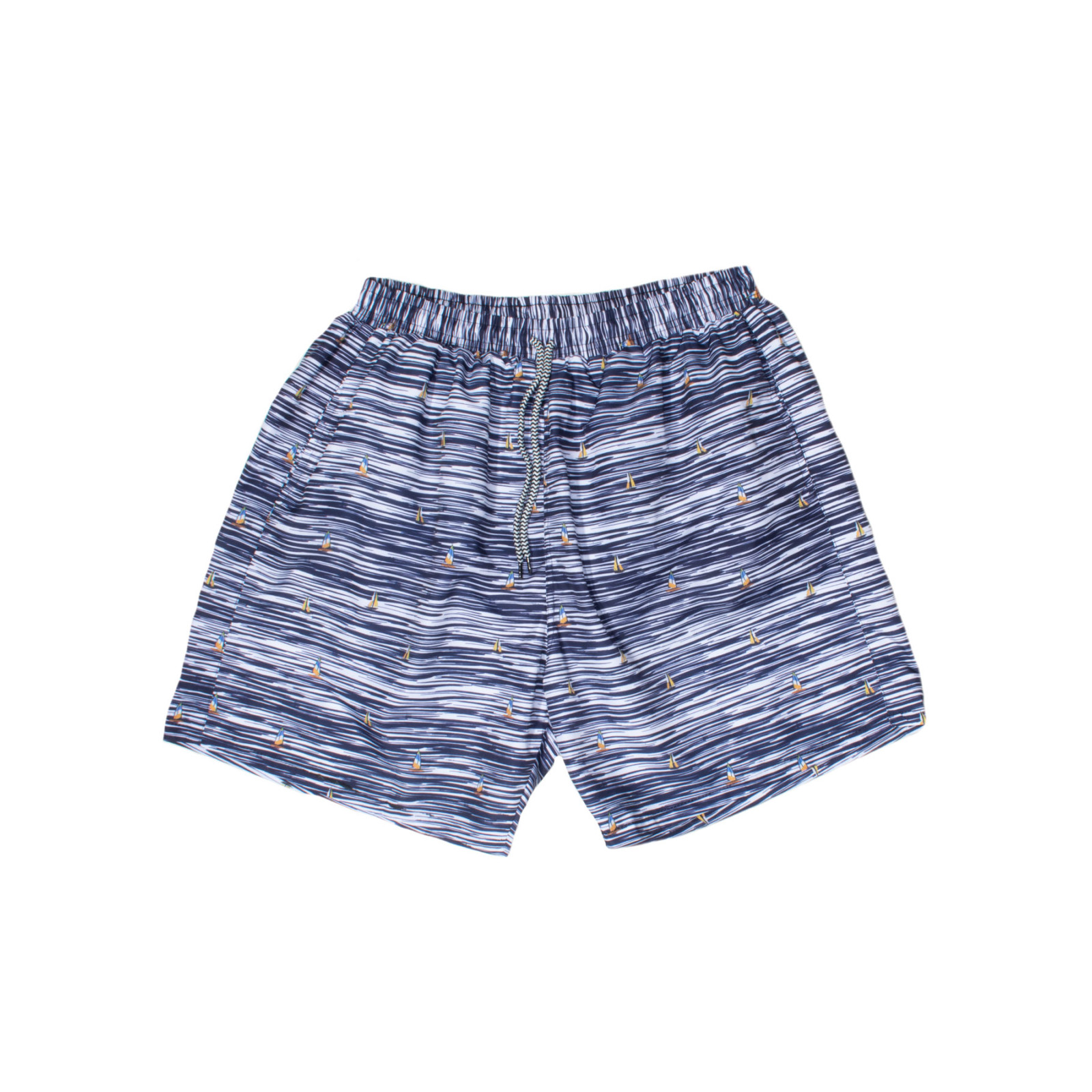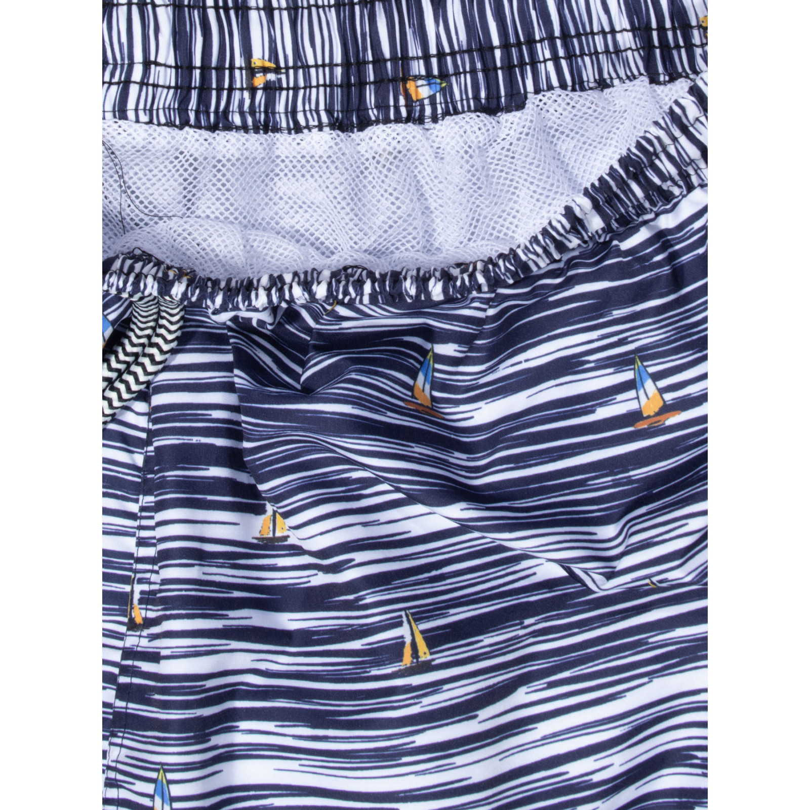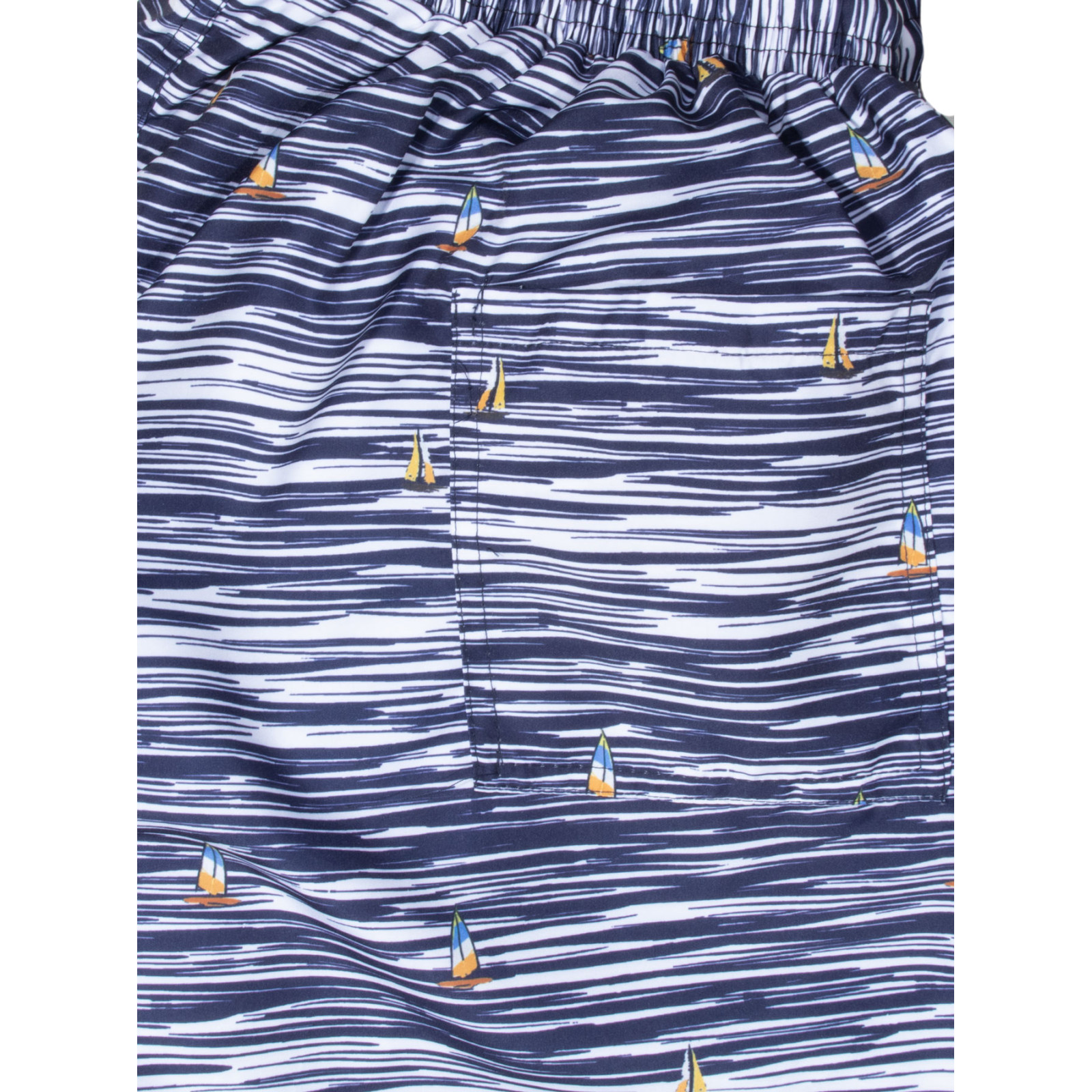 Морский принт, быстросохнущий материал, комфортная посадка, подкладка-сетка, пояс на резинке со шнурком, карманы. Состав - 100%полиамид