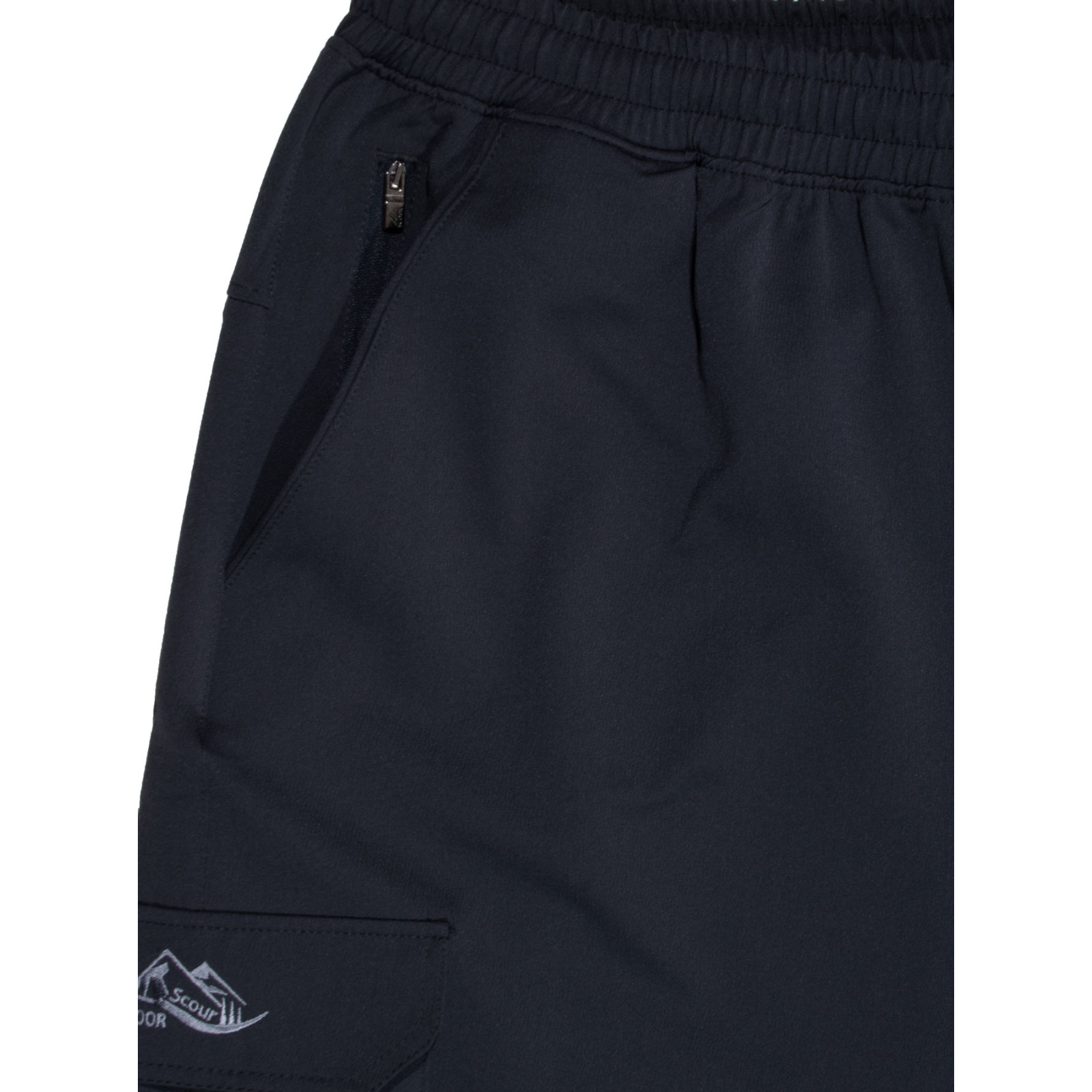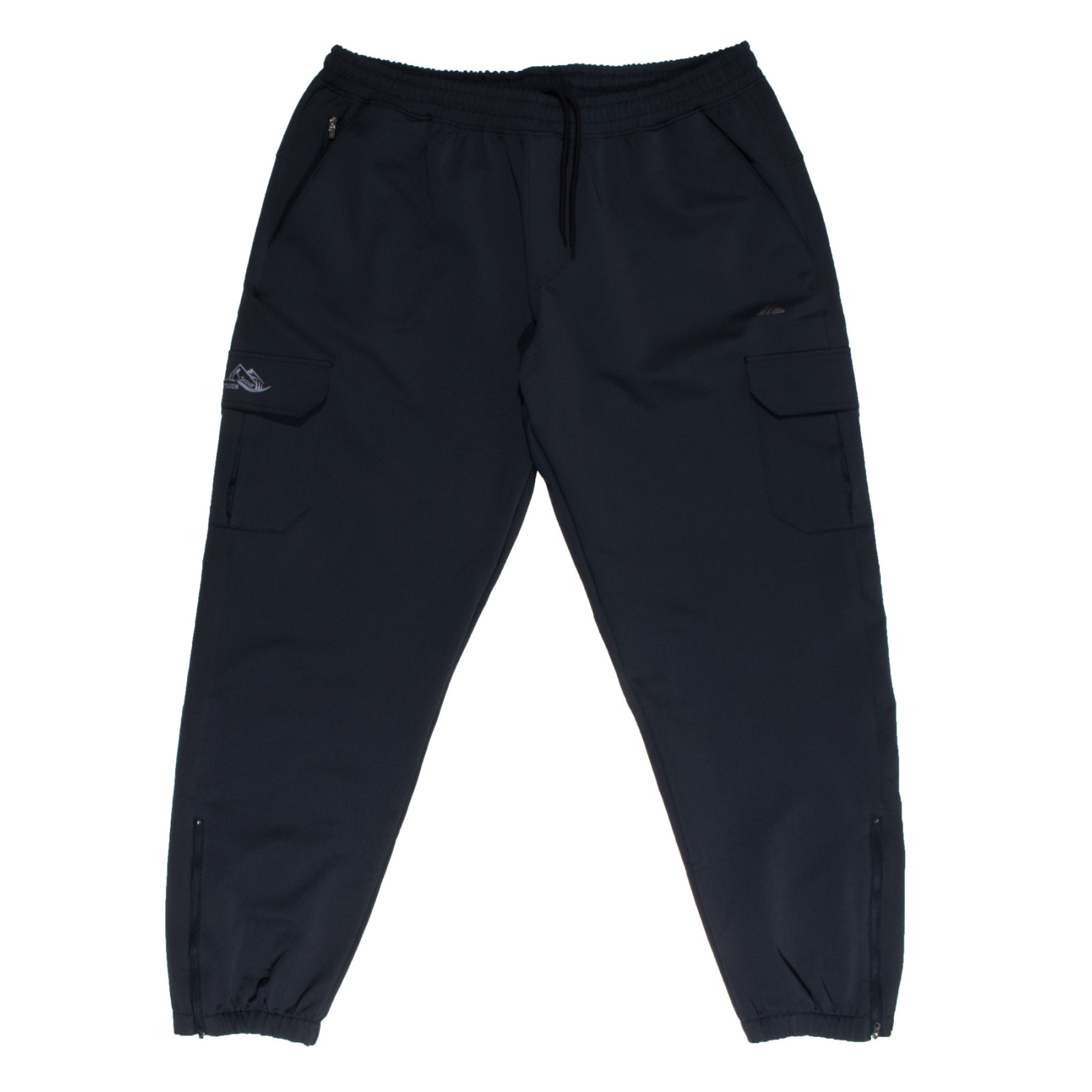 Спортивная модель, пояс и манжеты на резинке, прорезные карманы и нижний край брюк на молнииях, накладные карманы с клапанами. Состав - 100%полиэстер