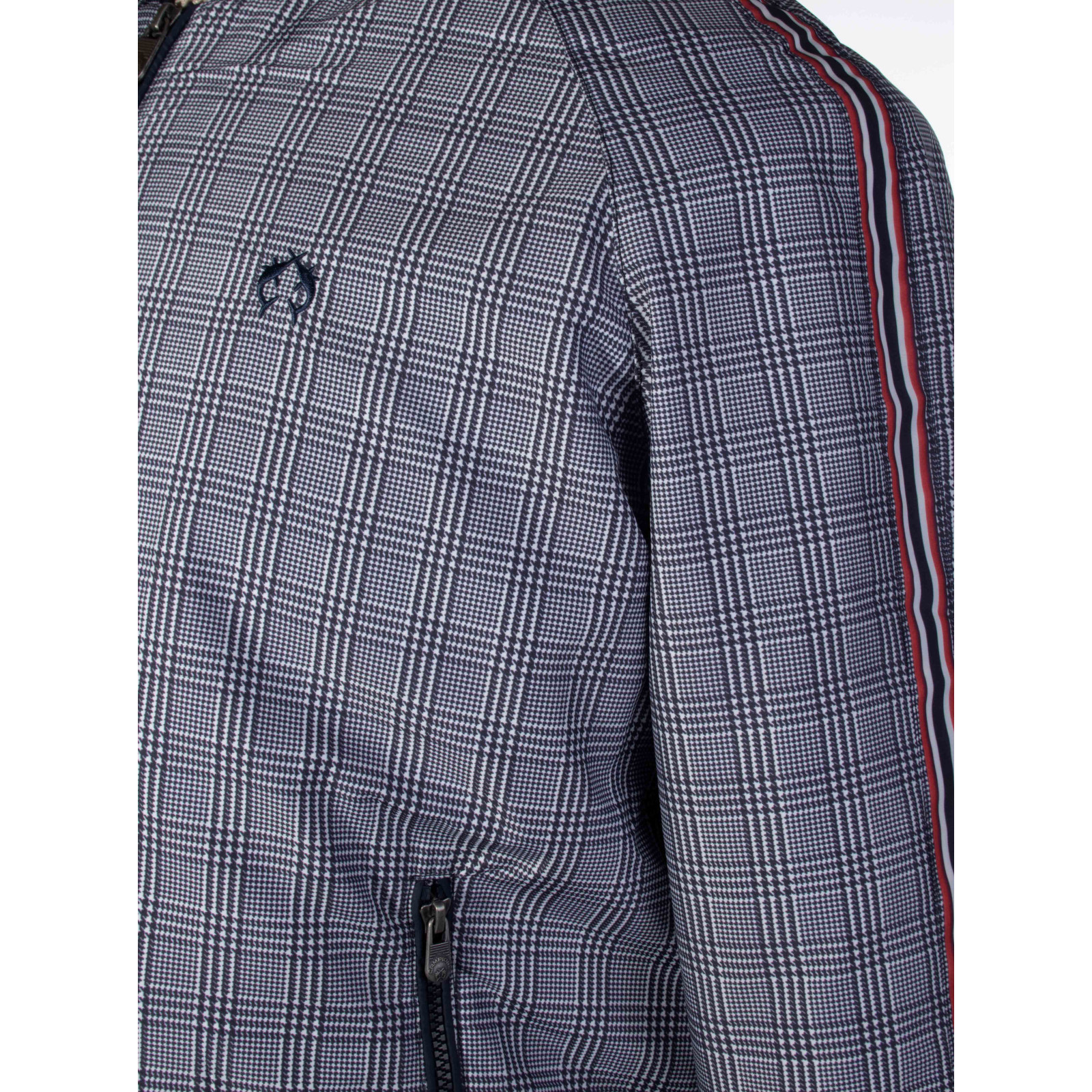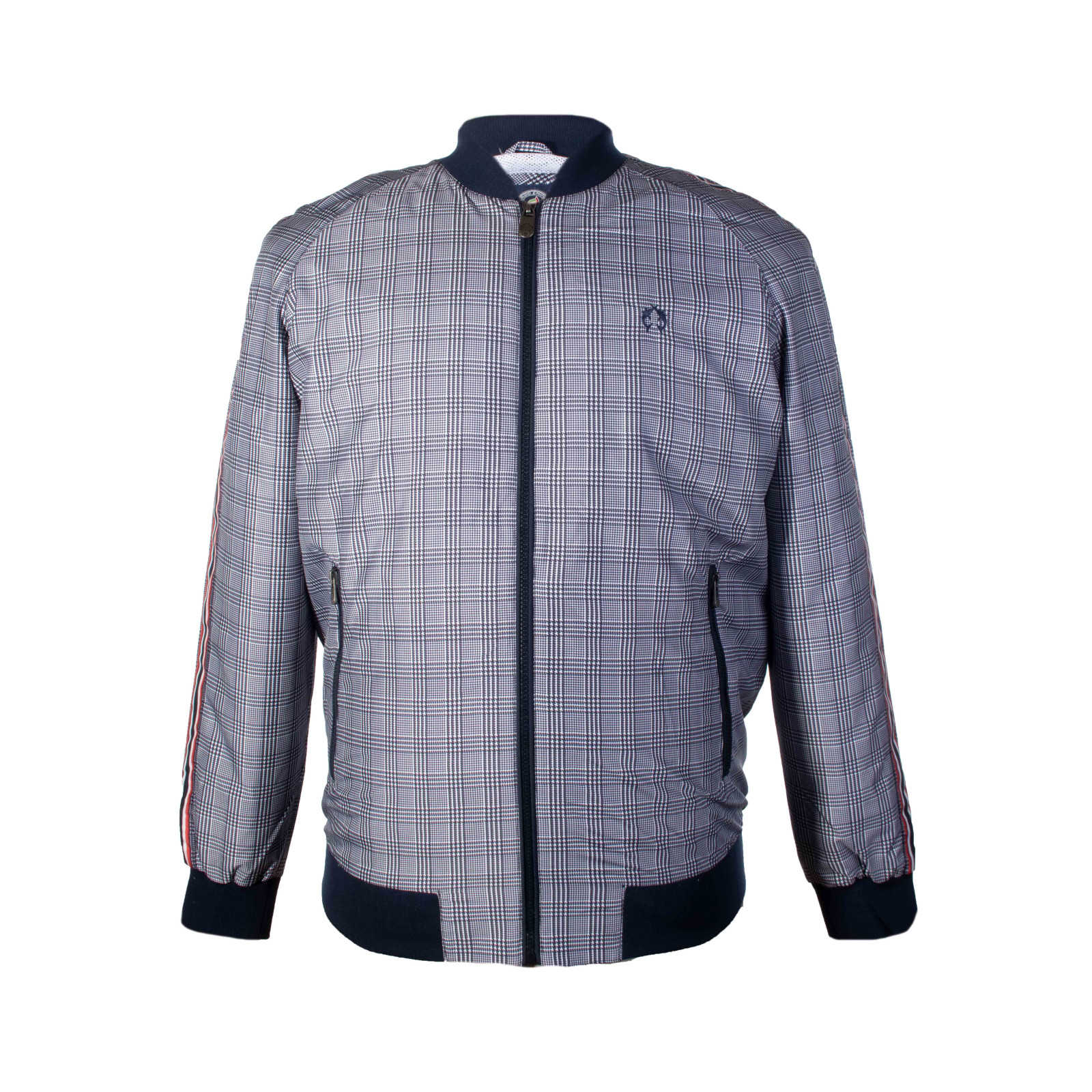 Модель из материала в клеточку, воротник -стойка, застежка и карманы на молниях, рукава декорированы контрастными лампасами, длинный рукав и низ изделия на манжетах. Состав - 100%полиэстер
