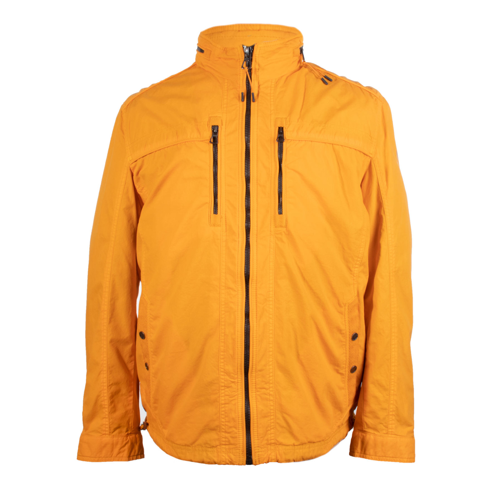 Модель из "вареного"хлопка, воротник-стойка, застежка на молнии, подкладка, рукава на манжетах, карманы, нижний край изделия на кулиске со шнурком. Состав - 100%хлопок