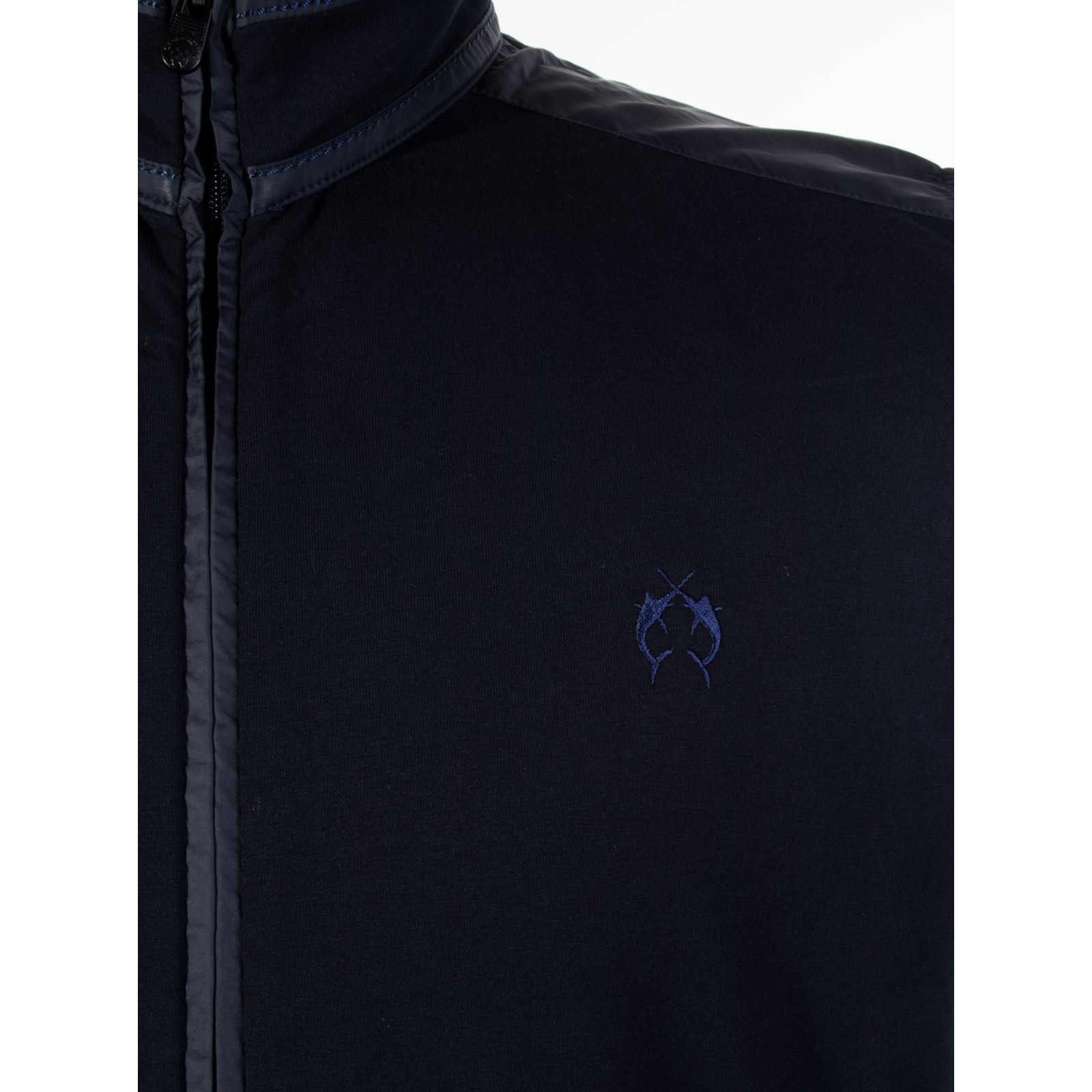 Модель из смесового хлопка, воротник-стойка, застежка и карманы на молнии, вставки из отделочного материала. Состав - 70% хлопок, 25%полиэстер, 5%эластан