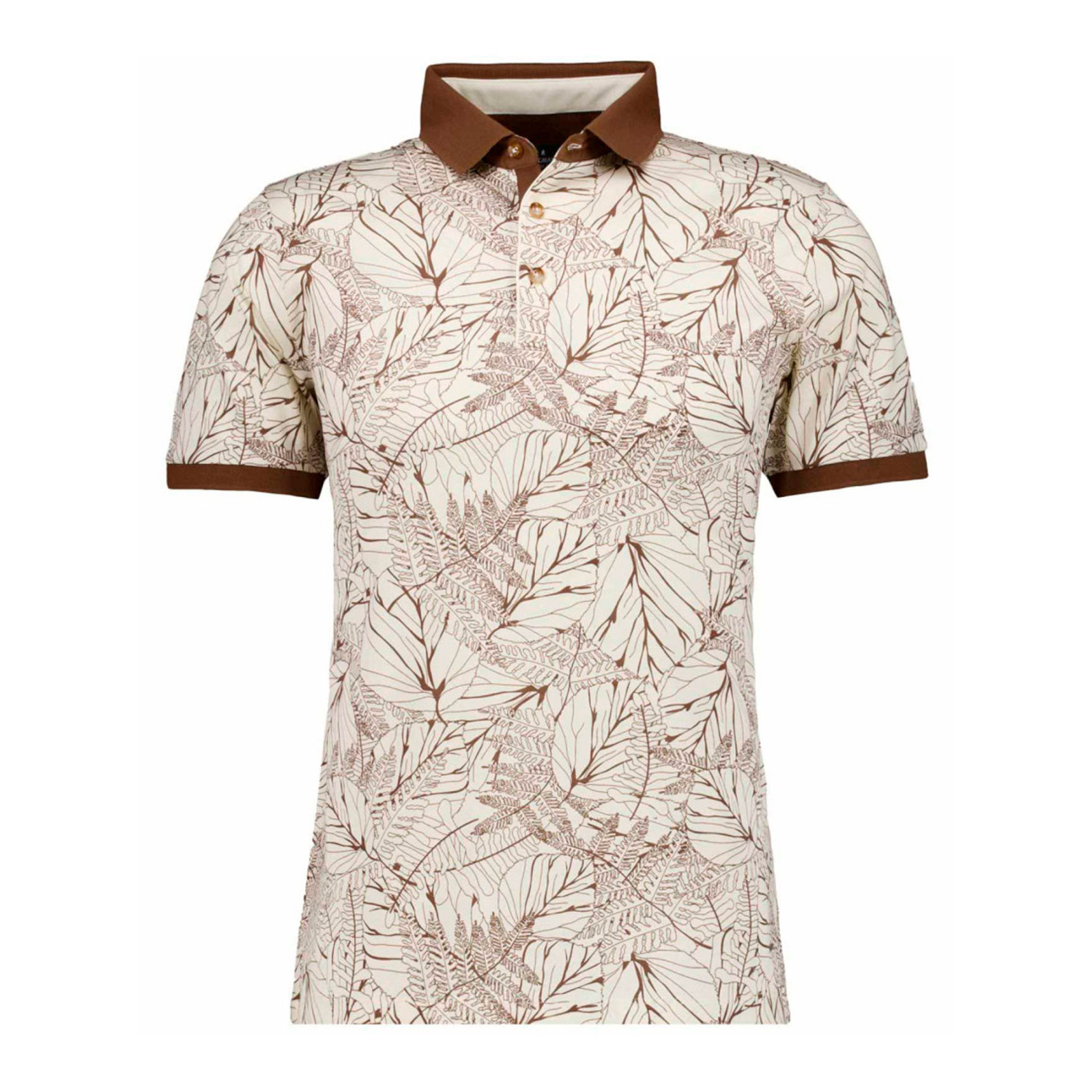 Модель з бавовни з рослинним принтом та контрастною обробкою, відкладний комір, планка на ґудзиках. Склад - 100% мерсерезована бавовна