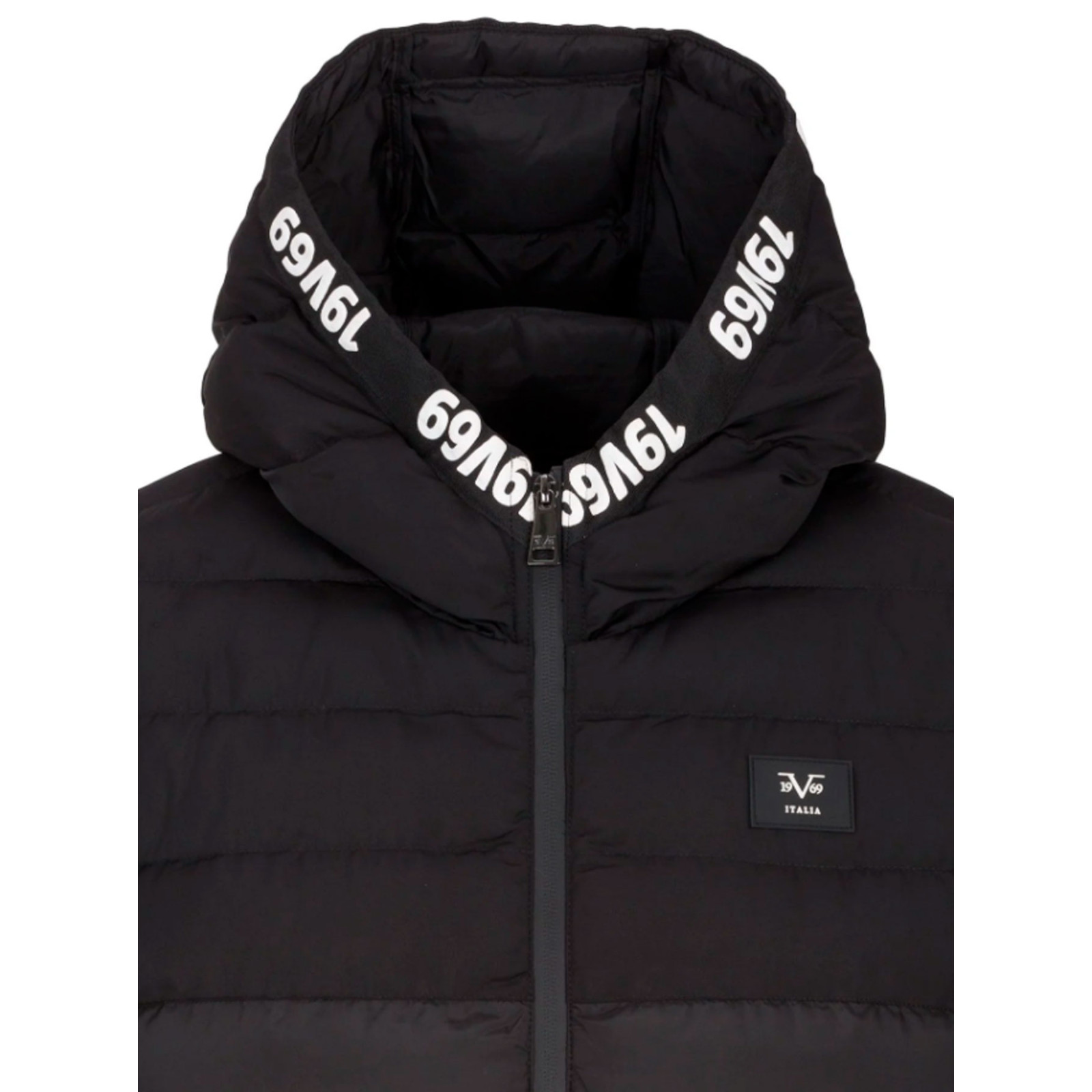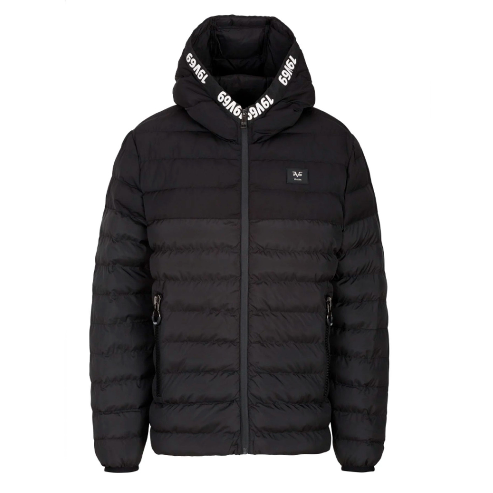 Стьобана модель з контрастними написами по капюшону та нижньому краю, застібка та кишені на блискавках, рукави на манжетах. Склад - 100% поліестер