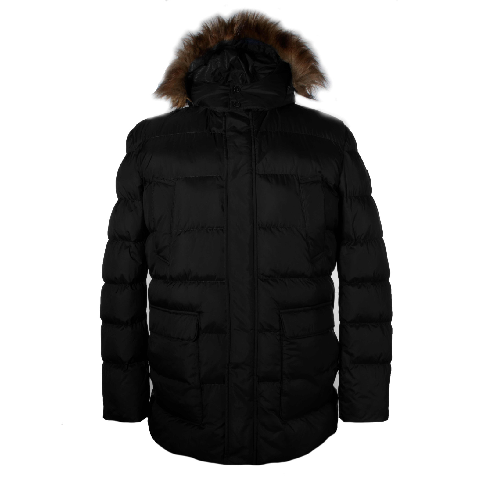 Подовжена стьобана модель, капюшон зі штучним хутром, застібка на блискавці та на планку, зовнішні та внутрішні кишені. Склад - 100% поліестер