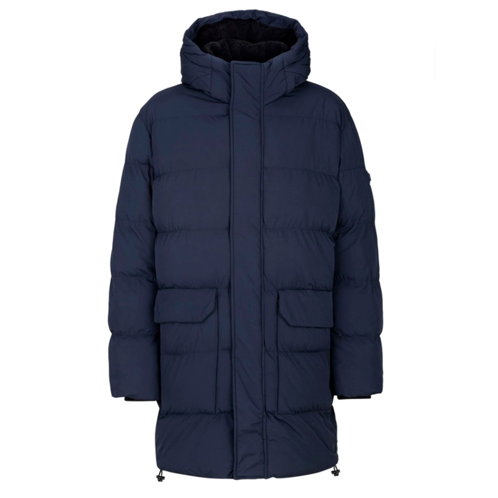 Стьобана модель з капюшоном, застібка на блискавці та на планці з кнопками, рукави з внутрішніми трикотажними манжетами, накладні кишені з клапанами, куліска з гумкою по нижньому краю. Склад - 100% поліестер