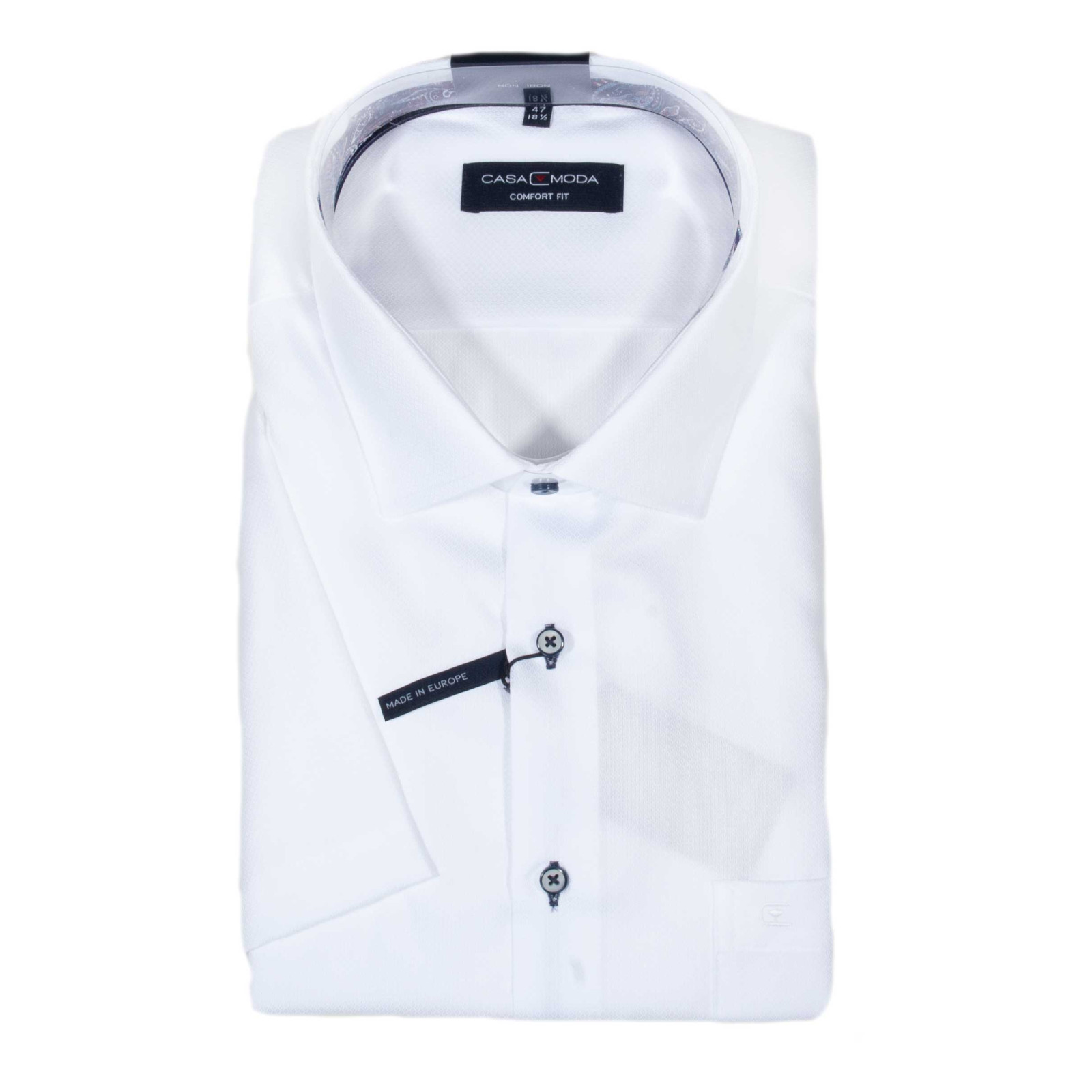 Однотонна модель, фактурна бавовна, короткий рукав, застібається на планку з гудзиками, відкладний комір, внутрішня частина коміра кольорова, нагрудна кишеня доповнена маленькою вишивкою в тон. Склад - 100% бавовна.