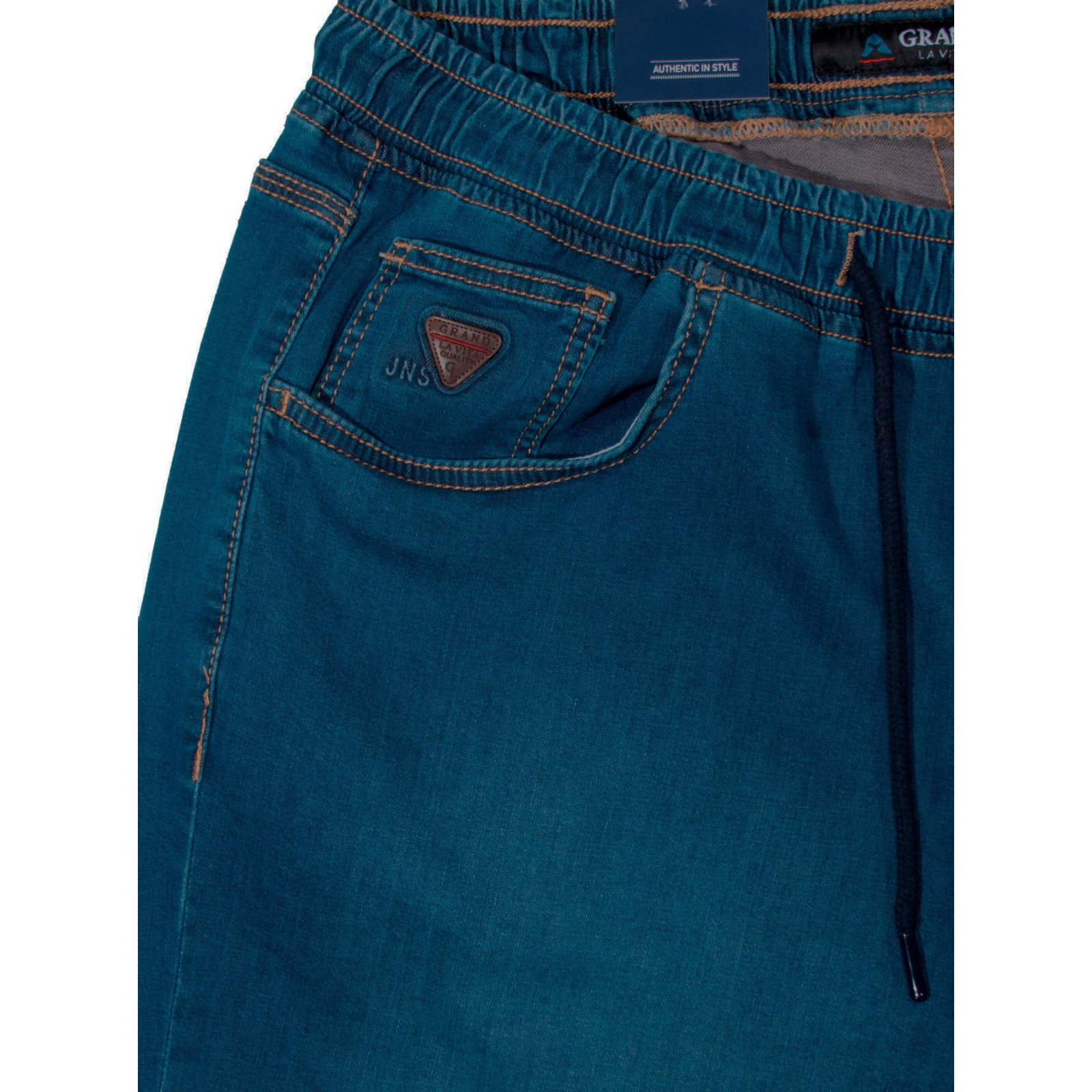 Модель із бавовни з додаванням еластану, пояс на гумці зі шнурком, без застібок, п'ять джинсових кишень. Склад - 98% бавовна, 2% еластан