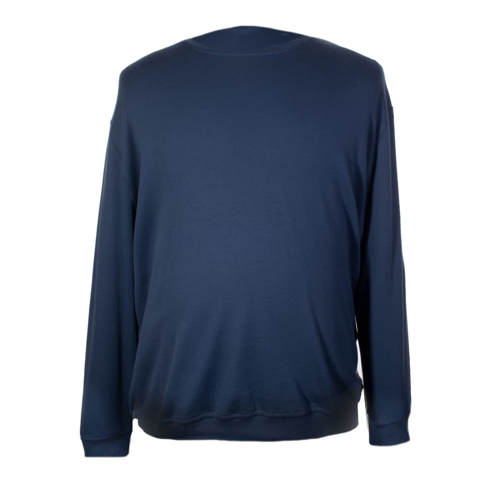 Модель із сумішевої фактурної бавовни, круглий виріз горловини, рукава та нижній край на манжетах. Склад - 70% бавовна, 30% поліестер