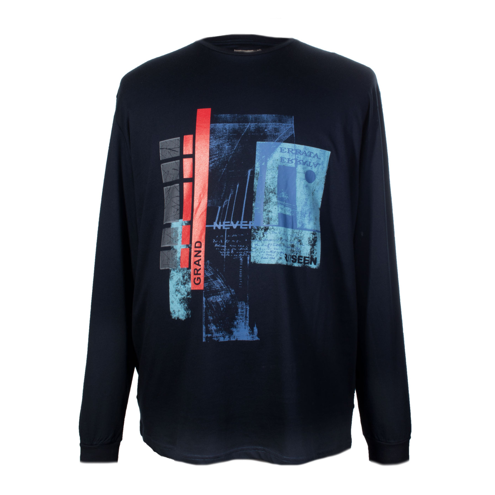 Модель із бавовни з об'ємним принтом, круглий виріз горловини, довгий рукав на манжеті. Склад -100% бавовна