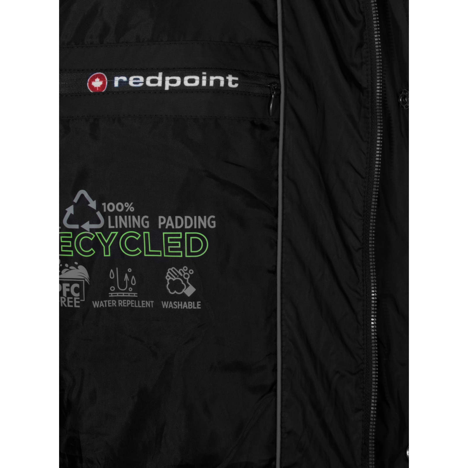 Подовжена стьобана модель з коміром-стійкою та знімним капюшоном, водовідштовхувальний матеріал, застібка на блискавці та на планці з кнопками, зовнішні та внутрішні кишені. Склад - 100% поліестер