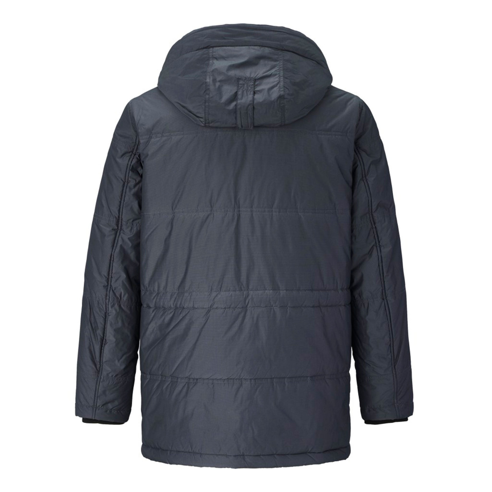 Подовжена модель зі знімним капюшоном, комір-стійка всередині доповнений штучним хутром, застібка на блискавці та на планці з гудзиками, рукави з трикотажними манжетами, зовнішні та внутрішні кишені, лаштунки зі шнурком. Склад - 100% поліестер