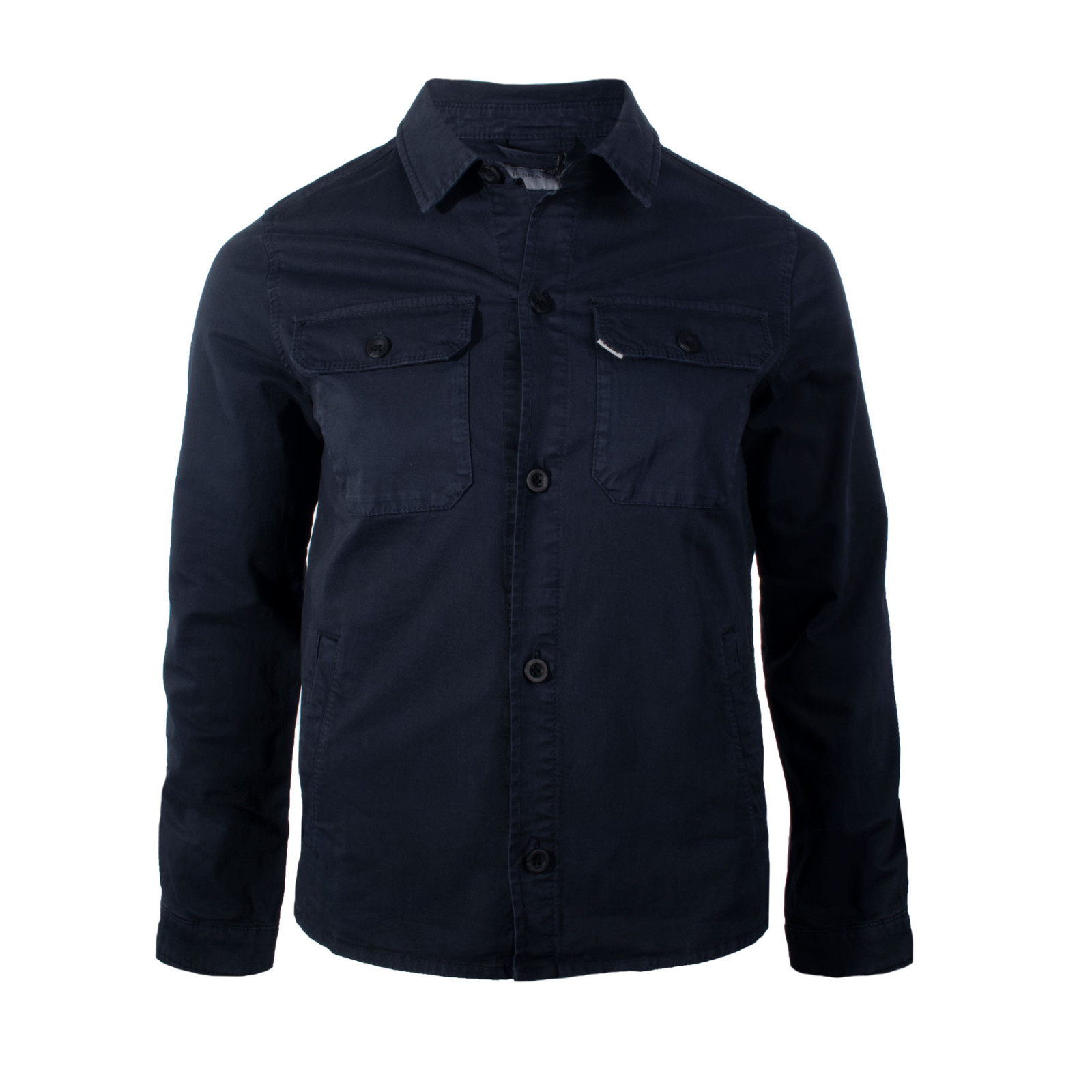 Модель сорочкового крою із змішаної бавовни, відкладний комір, застібка на ґудзиках, довгий рукав на манжеті, бічні кишені та нагрудні із клапанами. Склад - 98% бавовна, 2% еластан