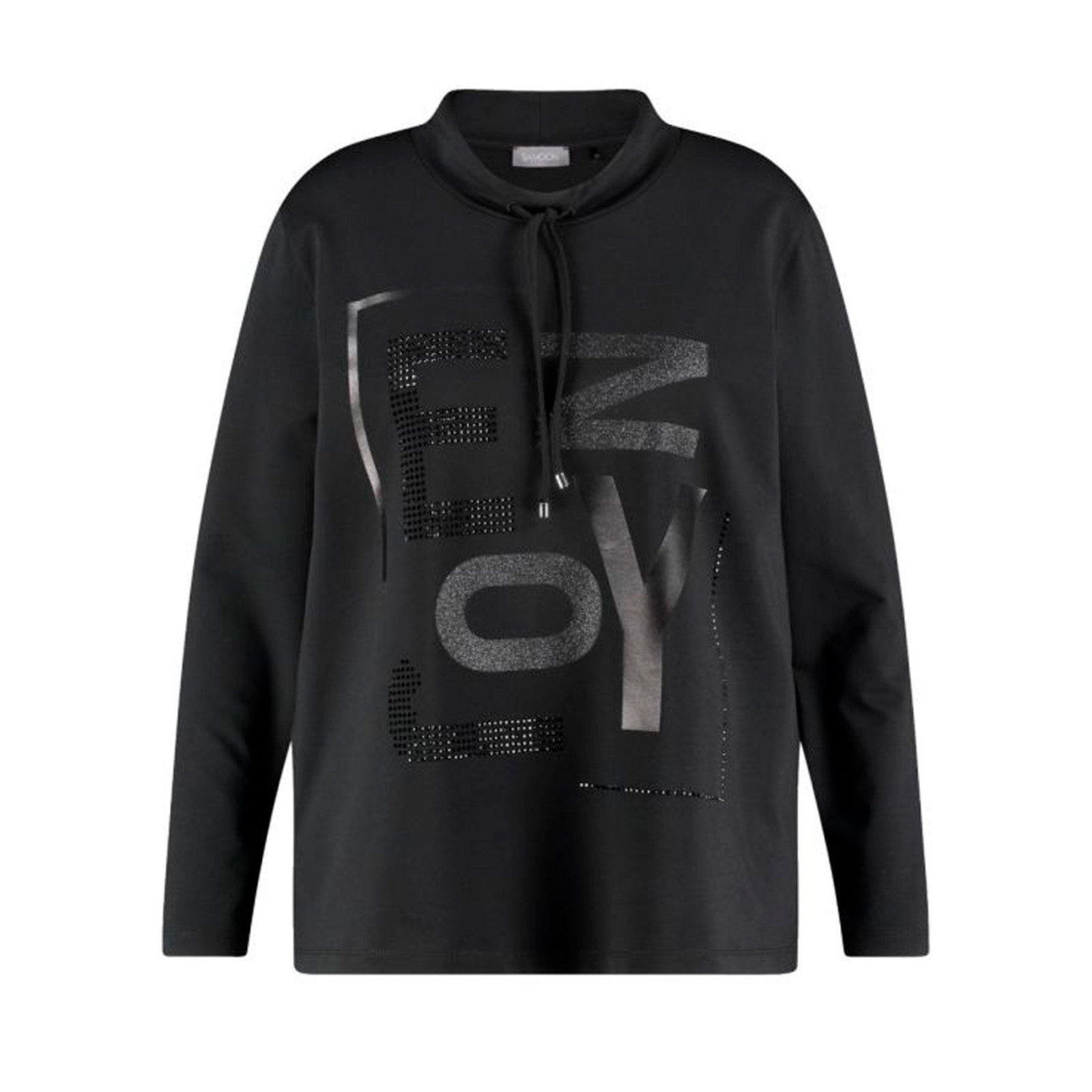Модель з віскози, комір-стійка зі шнурком, довгий рукав, перед декорований літерами. Склад - 55% віскоза, 38% поліамід, 7% еластан