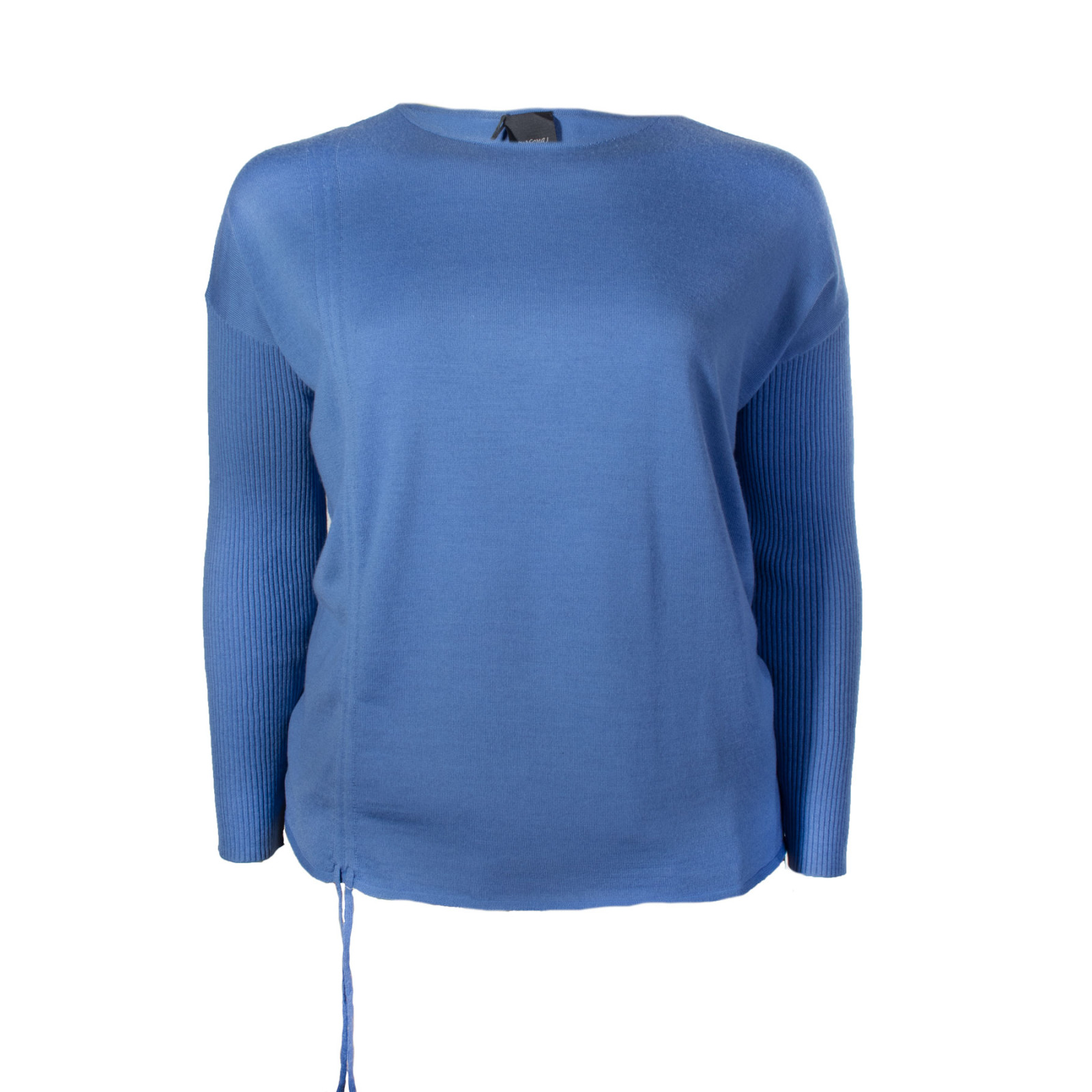 Модель із змішаної вовни, круглий виріз горловини, довгий рукав у гумку, збоку куліска зі шнурком. Склад - 50% вовна, 50% акрил.