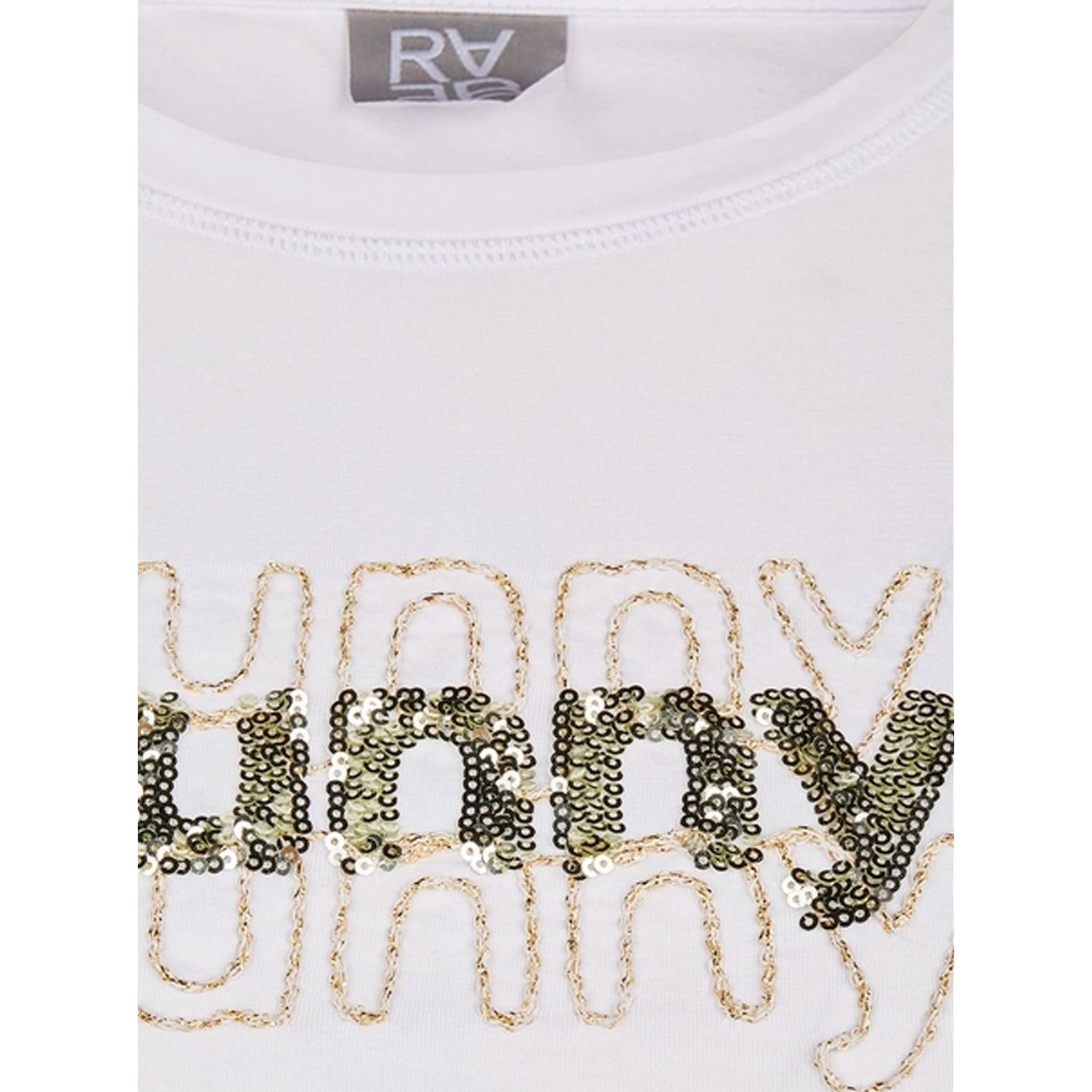 Модель з круглим вирізом горловини, перед декорований написами з бісеру та паєток. Склад - 94% бавовна, 6% еластан