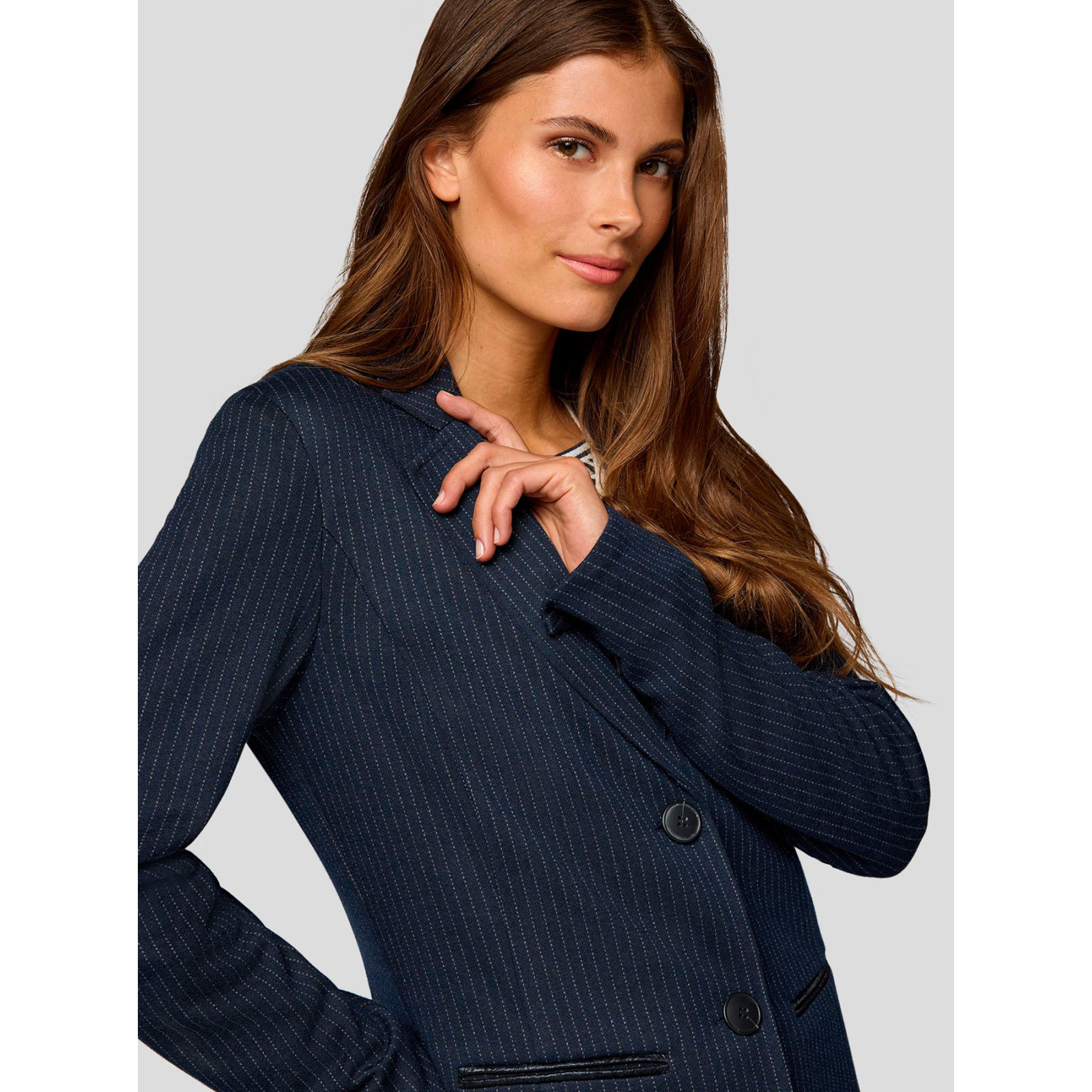 Модель у смужку із змішаної віскози, відкладний комір, застібка на ґудзиках, прорізні кишені, рукави із розрізами. Склад - 64% поліестер, 33% віскоза, 3% еластан