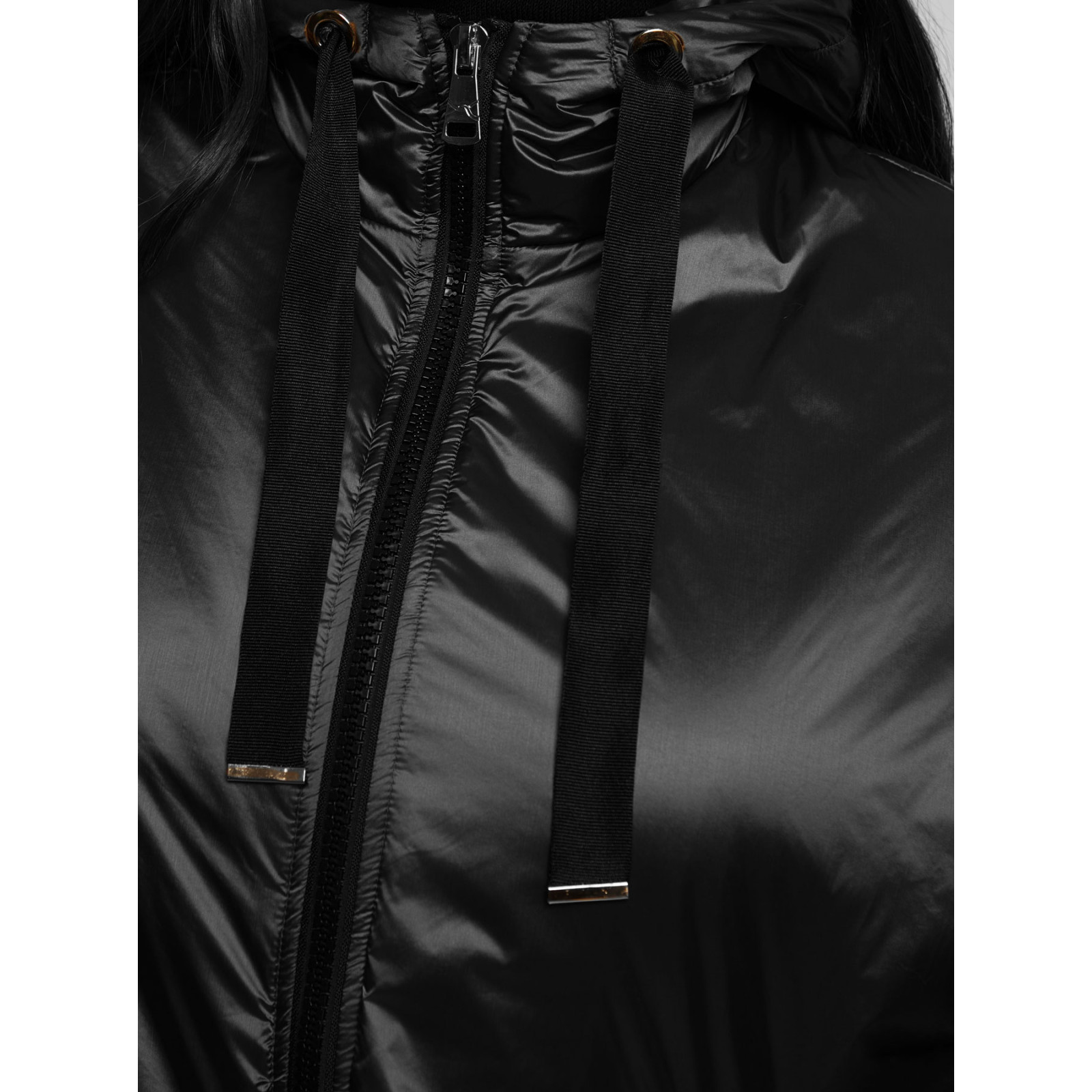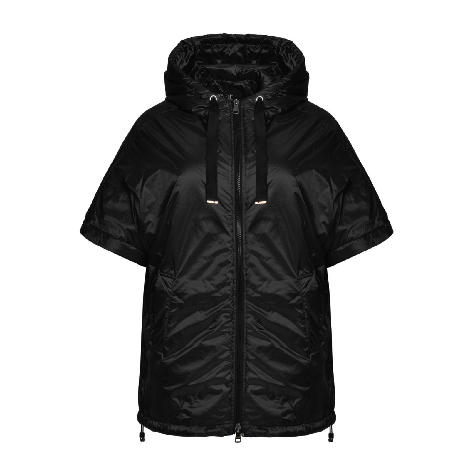 Подовжена модель з капюшоном, застібка на блискавці, бічні кишені, нижній край на лаштунці зі шнурком. Склад – 100% поліамід