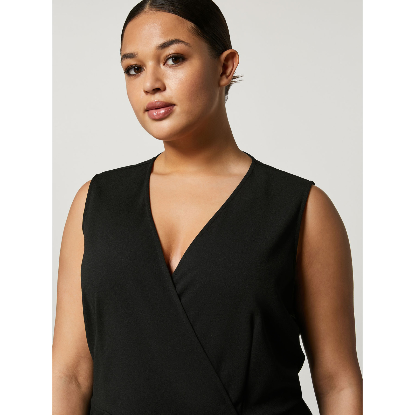 Модель із сумішевого матеріалу, V-подібний виріз горловини, без рукавів, застібка ззаду на блискавці. Склад - 94% поліестер, 6% еластан