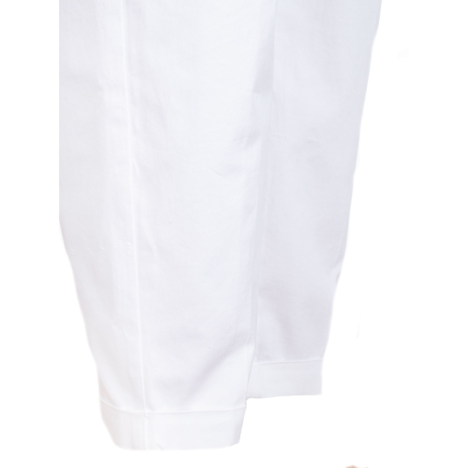 Укорочена модель з відворотами, пояс зі шлевками для ременя, застібка на блискавці, бічні кишені. Склад - 97% бавовна, 3% еластан