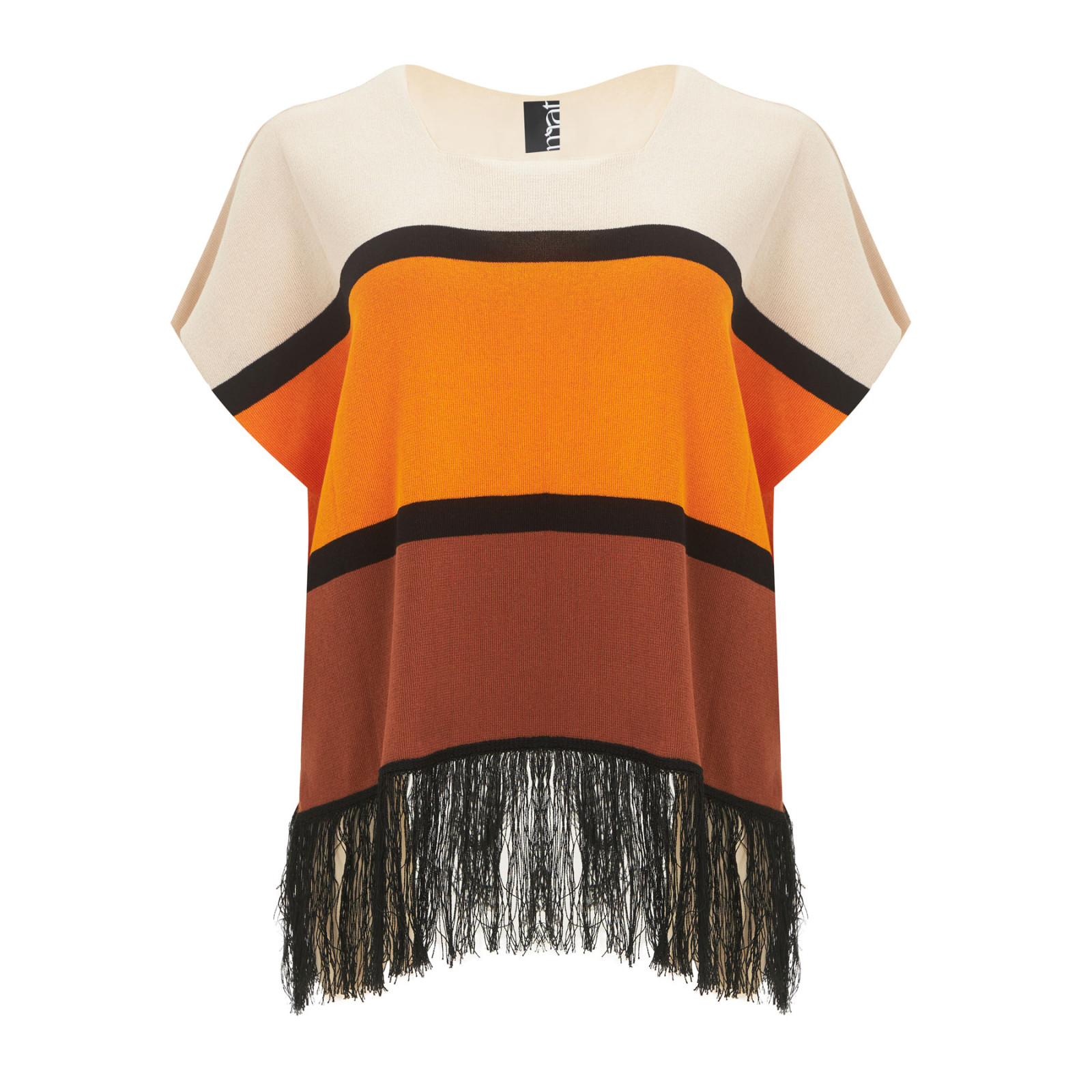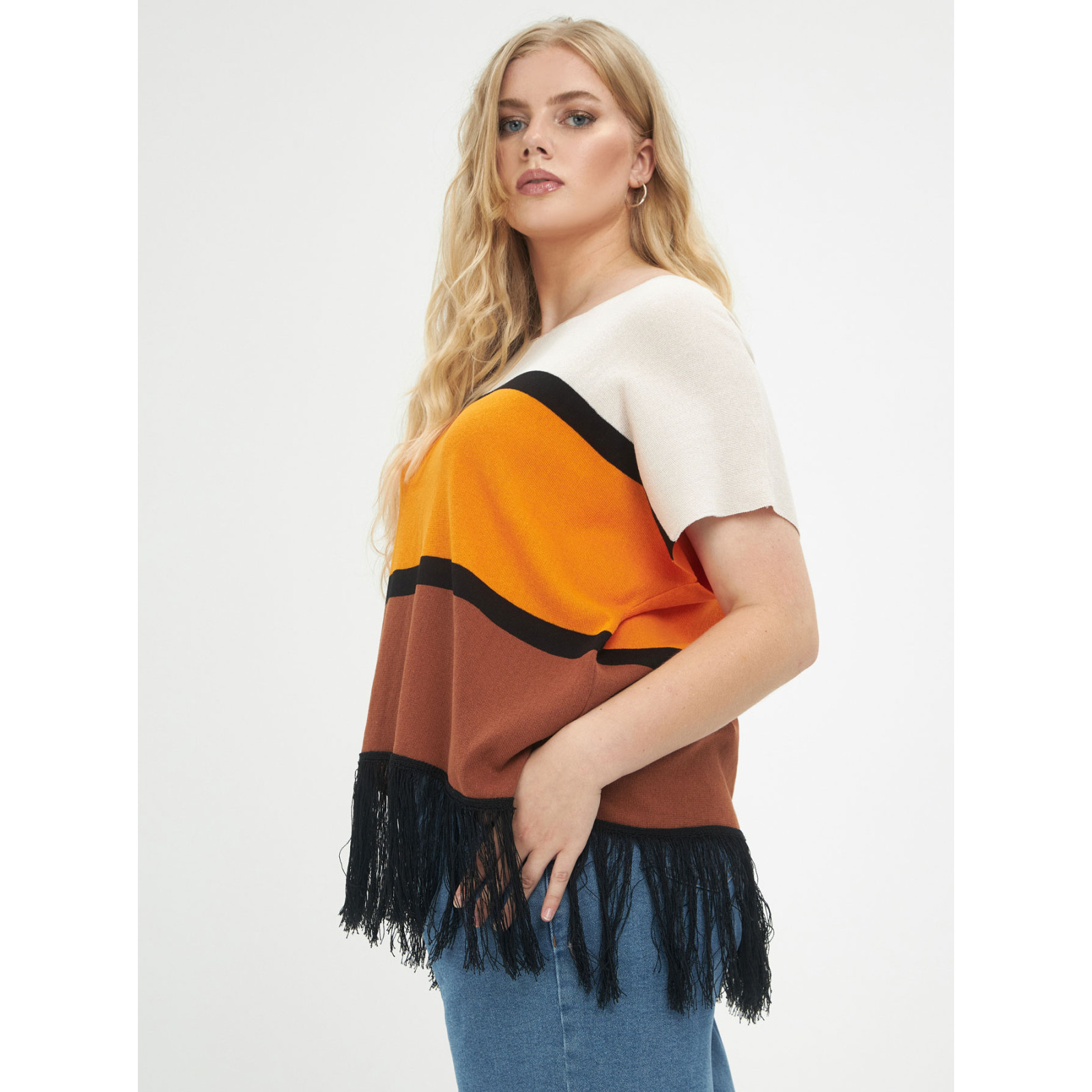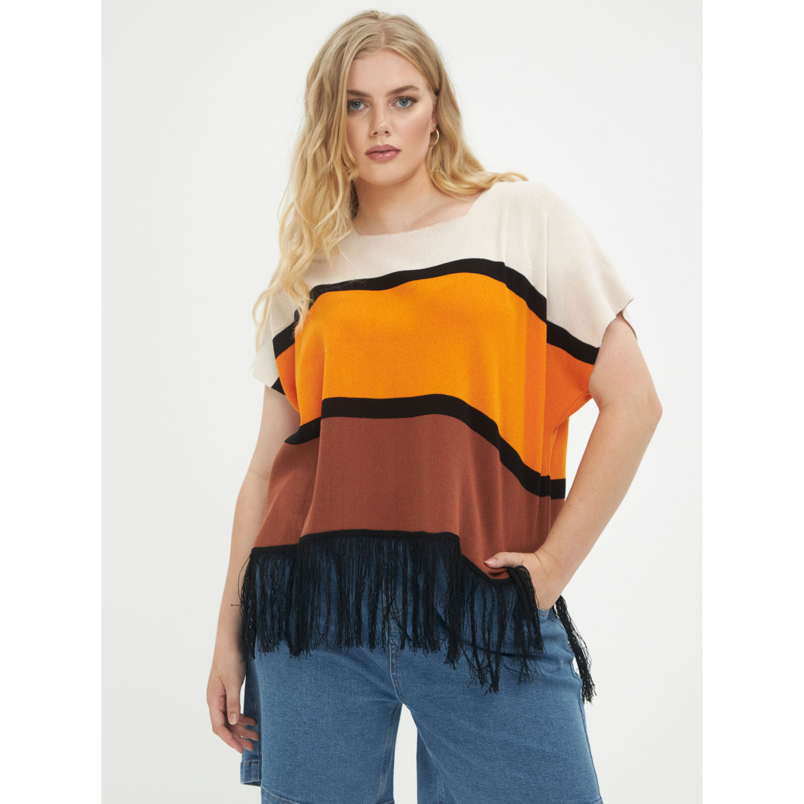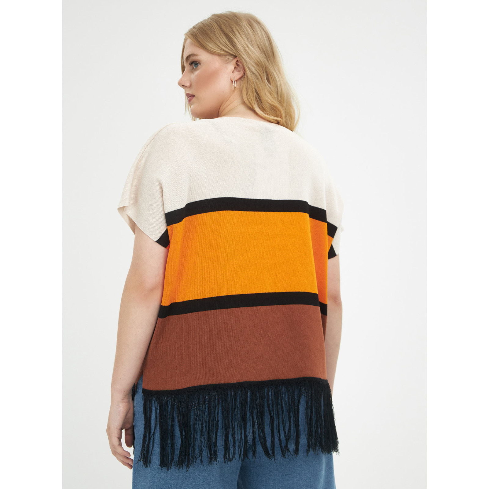 Модель із бавовни в смужку з бахромою, круглий виріз горловини, короткий рукав, бічні розрізи. Склад - Склад - 100% бавовна