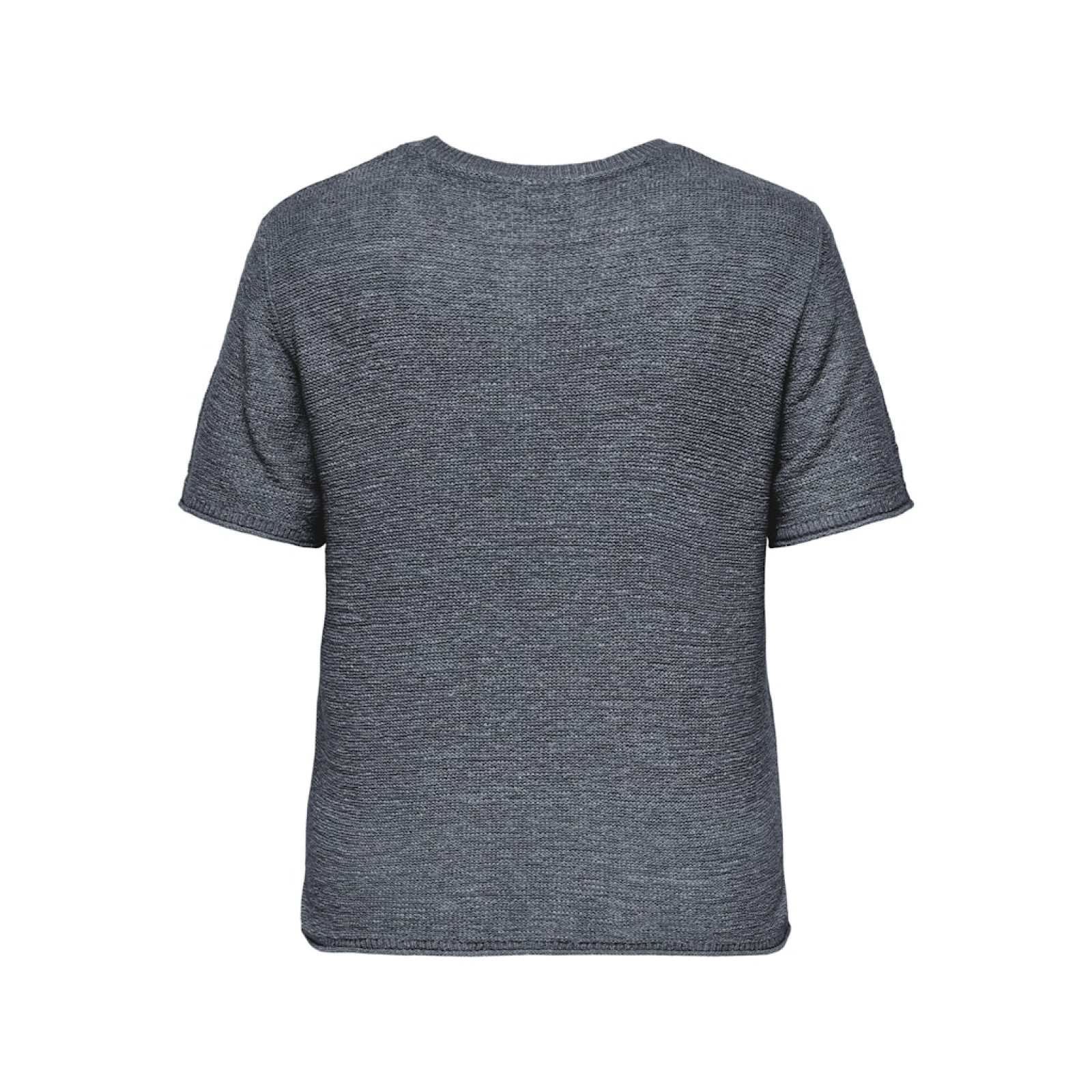 Модель із змішаної пряжі, круглий виріз горловини, короткий рукав, бічні розрізи. Склад - 55% акрил, 45% поліамід
