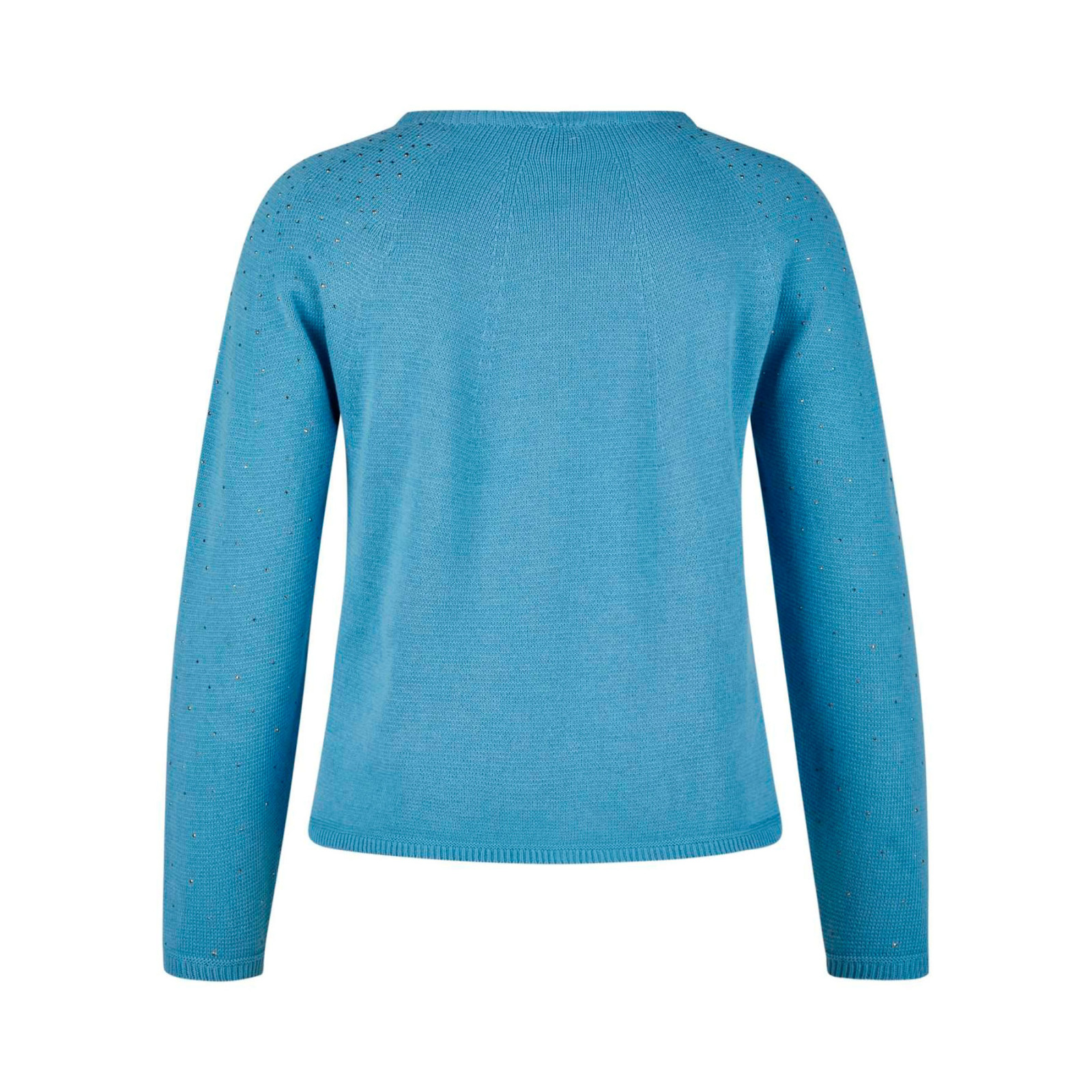 Модель из хлопка с декоративными стразами, круглый вырез горловины, длинный рукав. Состав - 100%хлопок