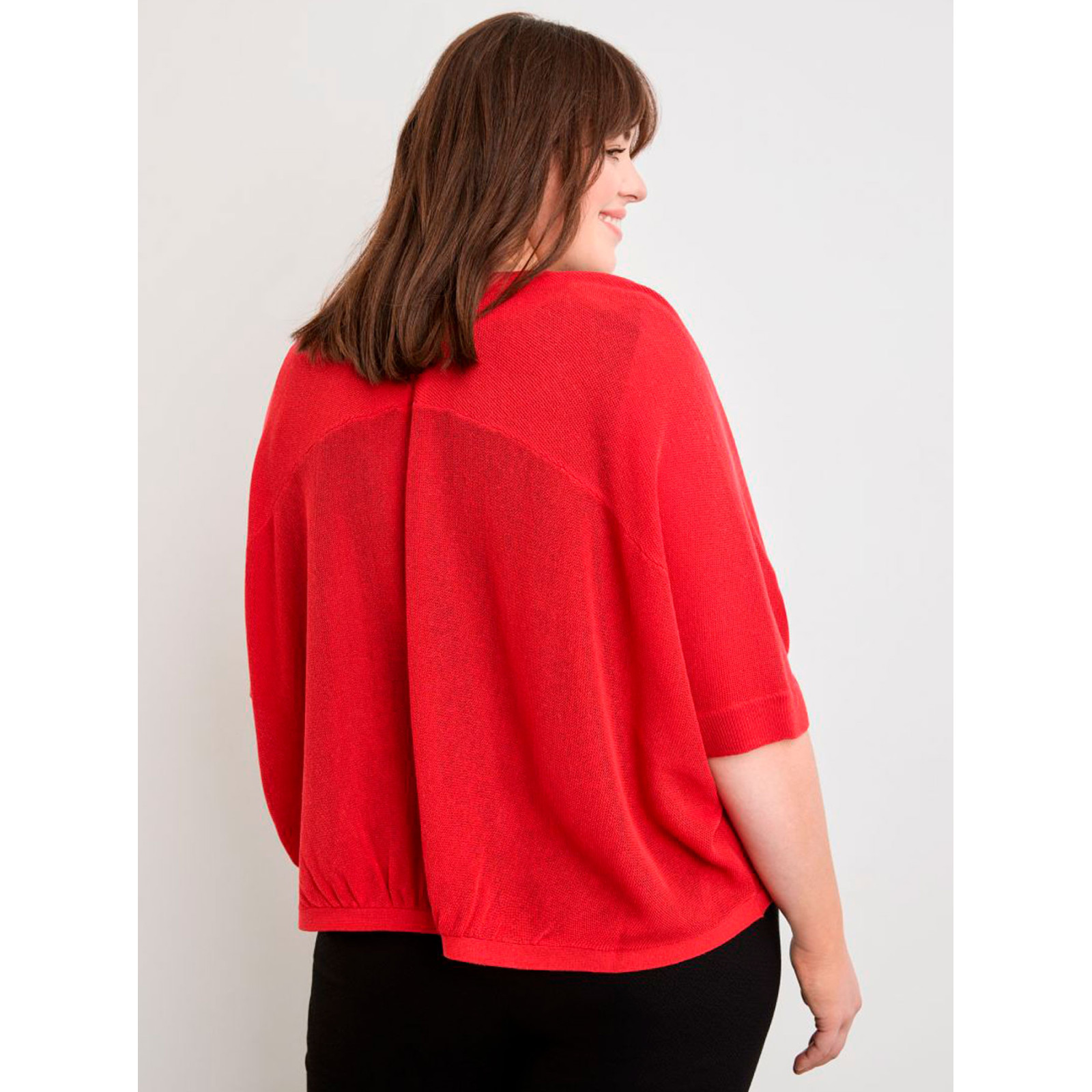 Модель із змішаної пряжі з додаванням льону, рукава 3/4, без застібок. Склад - 58% акрил, 26% ліоцел, 18% льон