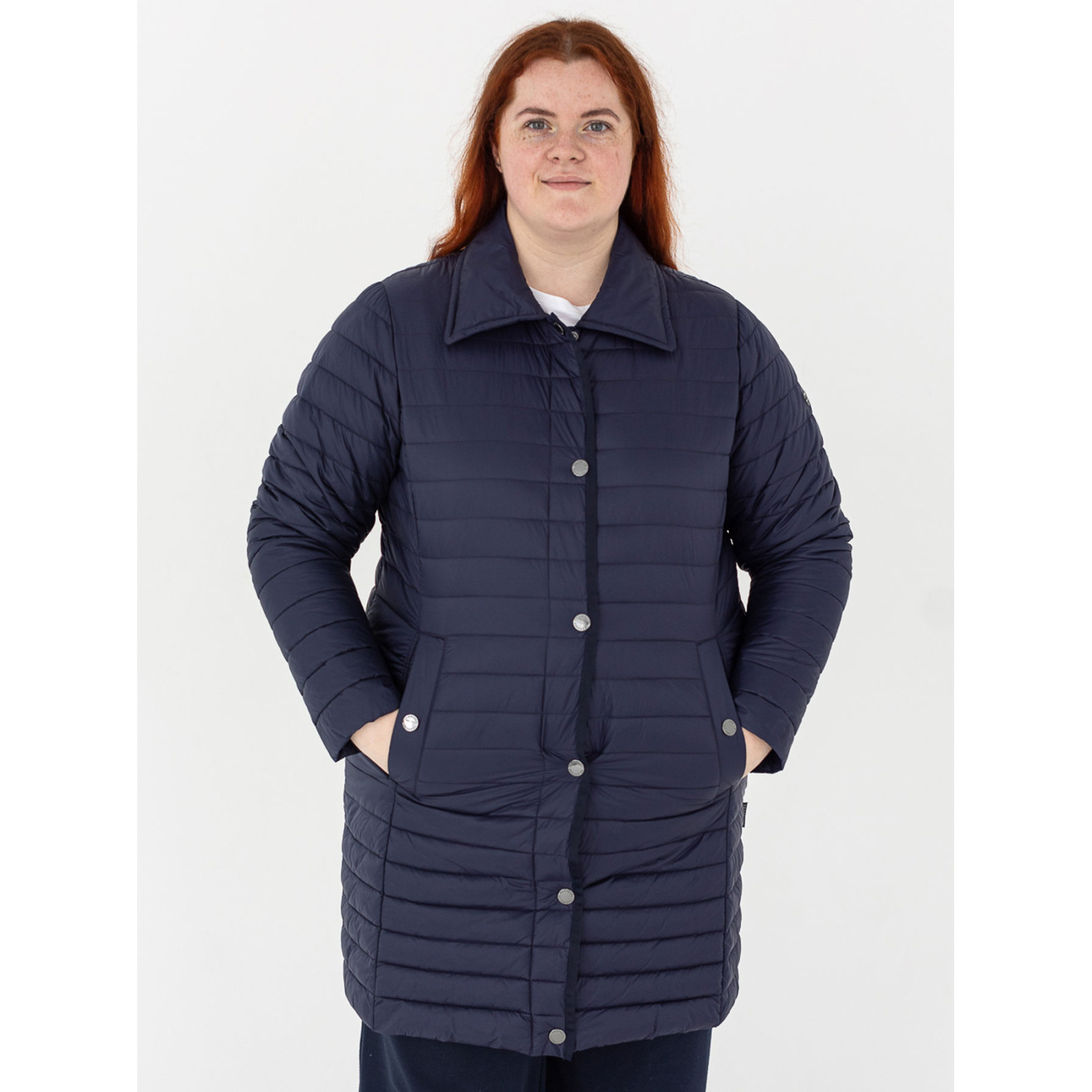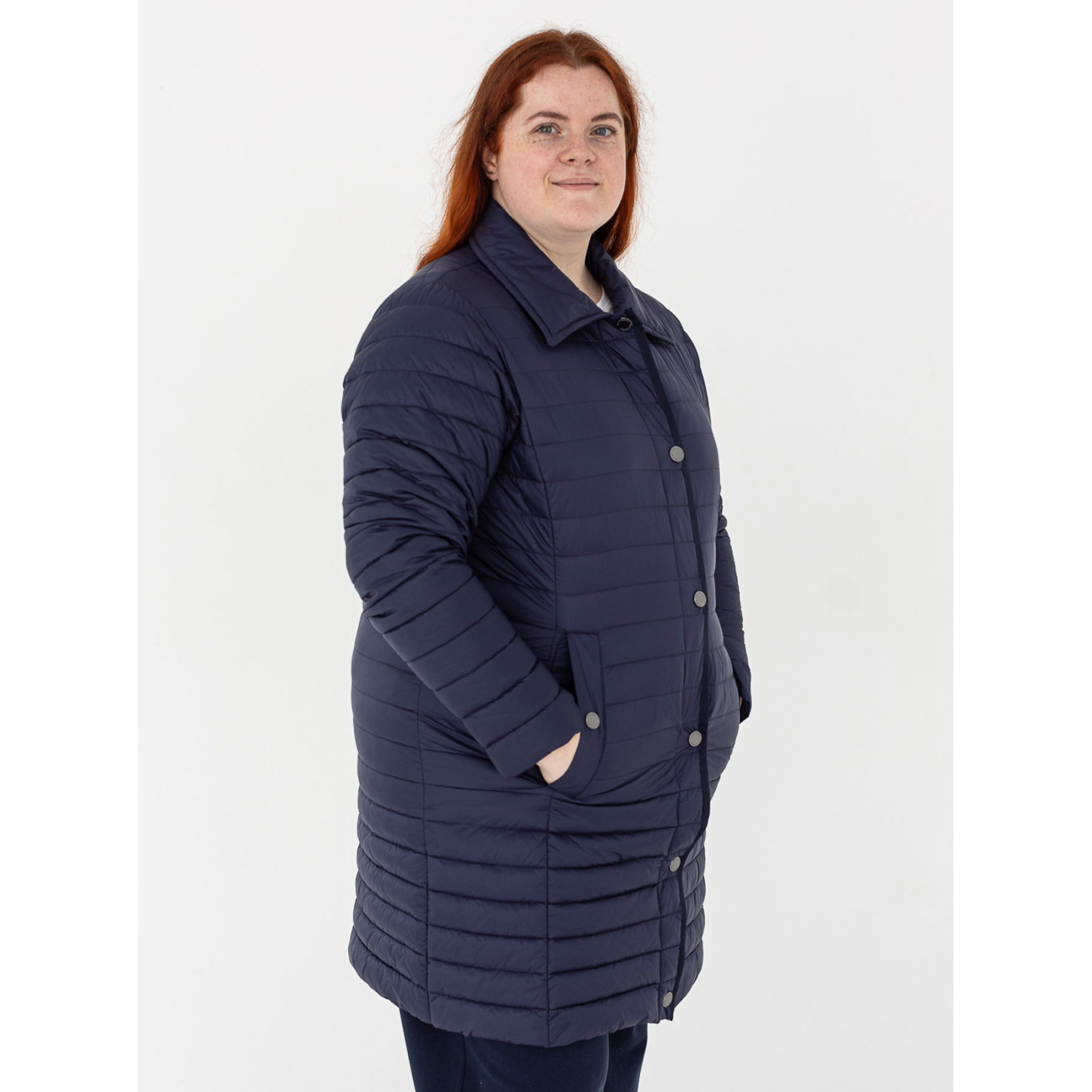 Стеганна модель з відкладним коміром, застібка та кишені на кнопках. Соста - 100% поліамід