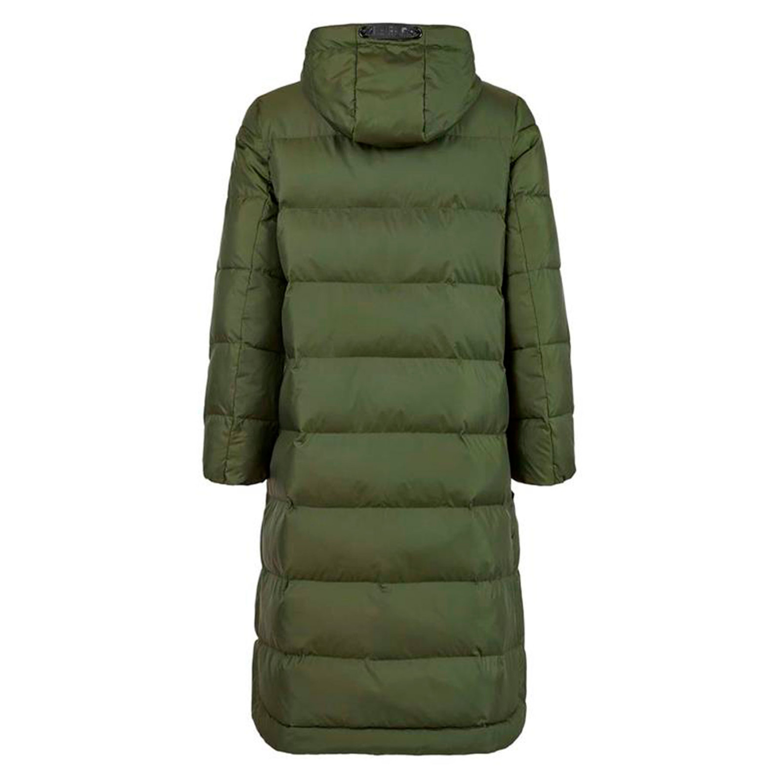 Подовжена стьобана модель з капюшоном, застібка та кишені на блискавках, асиметричний нижній край із бічними розрізами. Склад - 100% поліамід/технопух