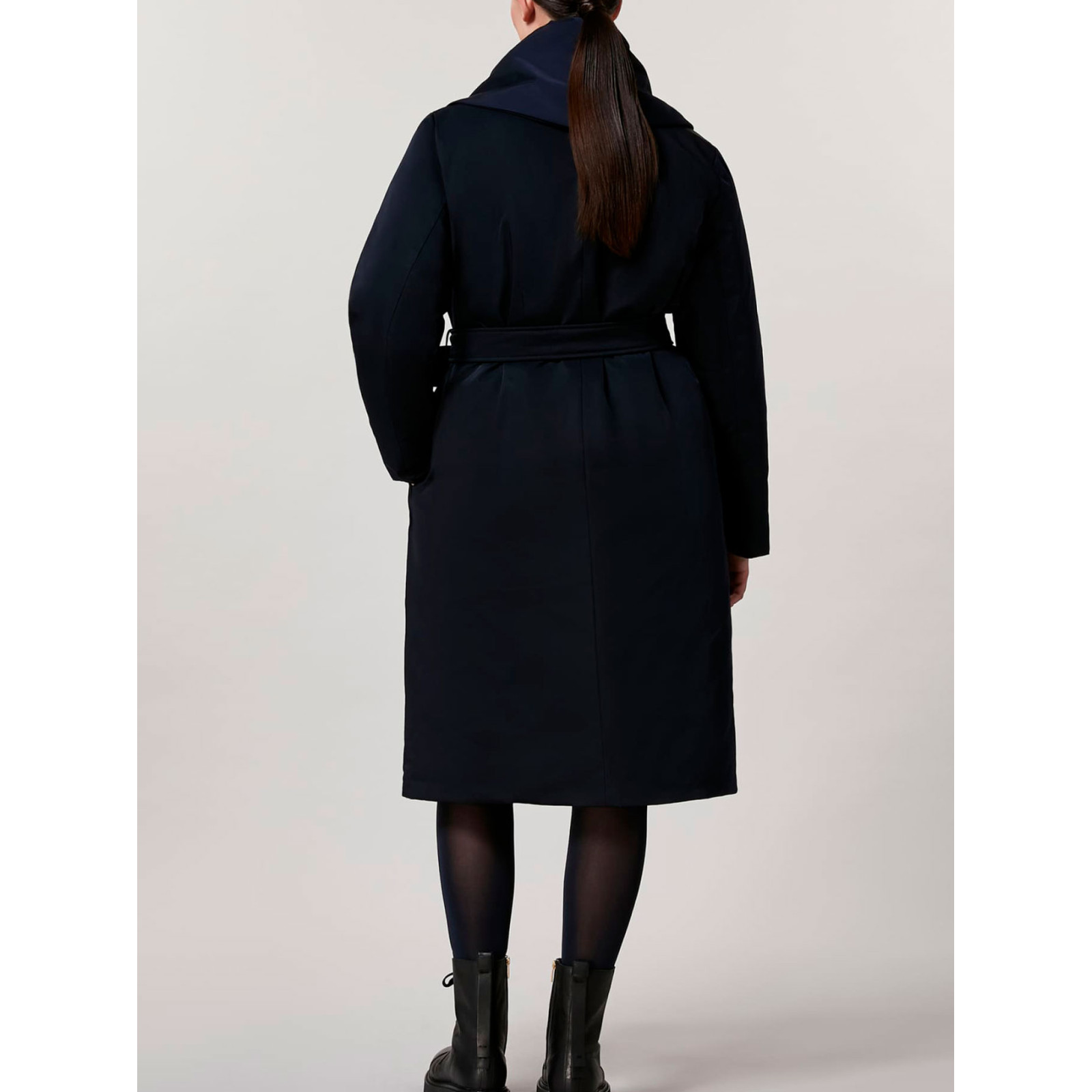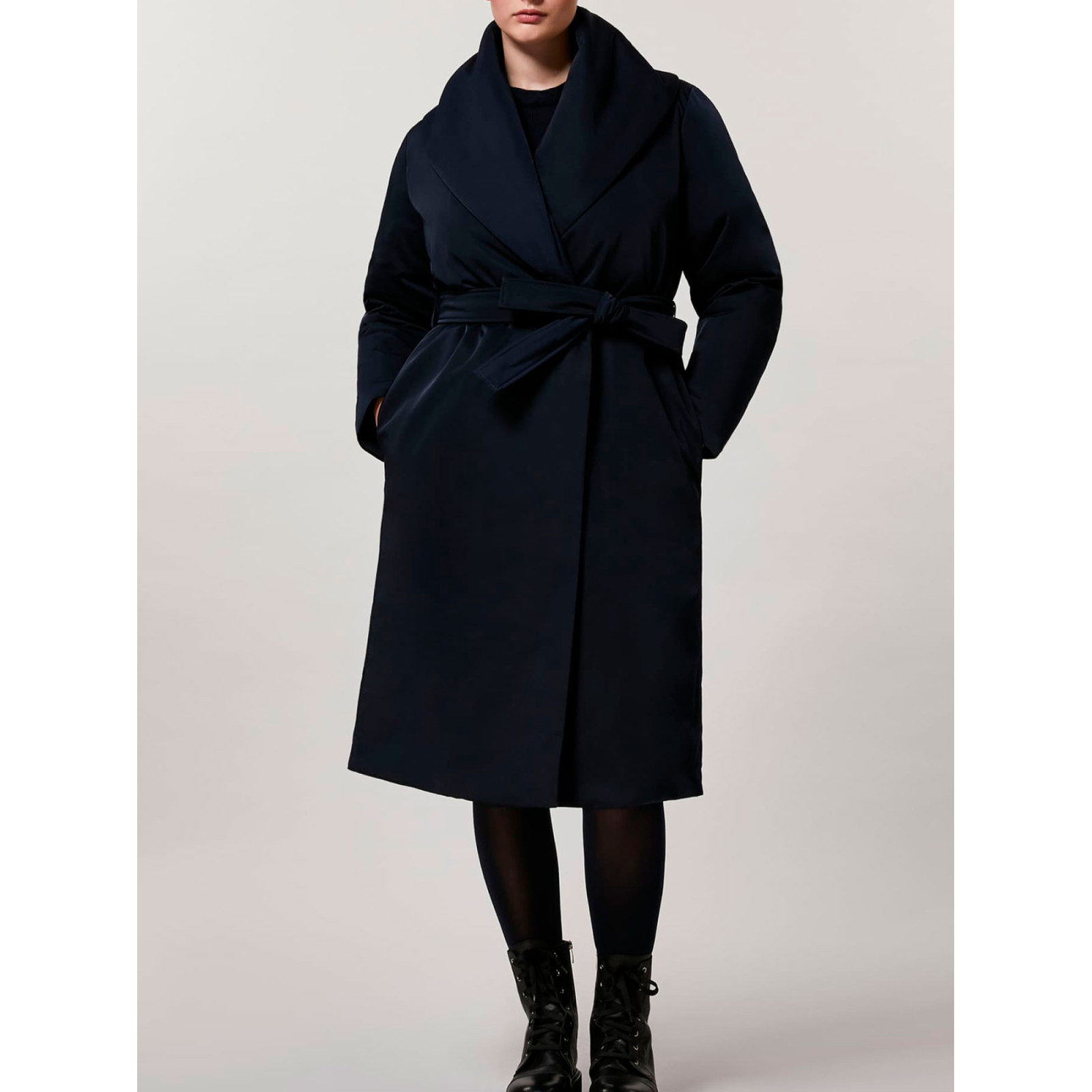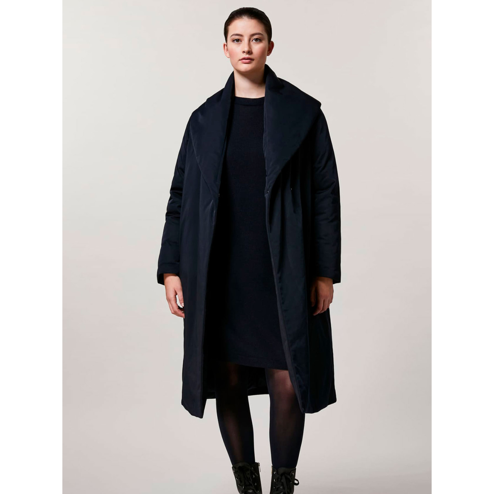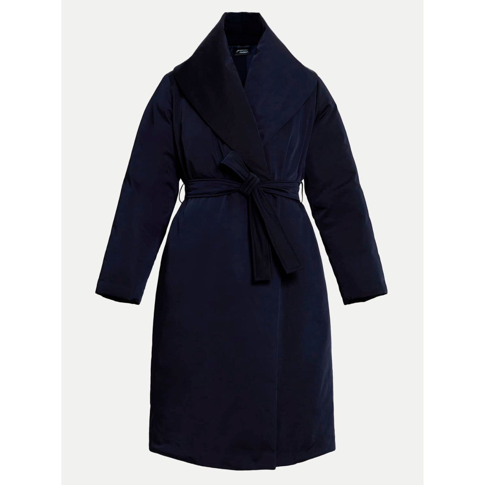 Модель під пояс із шалевим коміром, середня довжина, бічні кишені. Склад - 71% поліестер, 29% еластомультестер