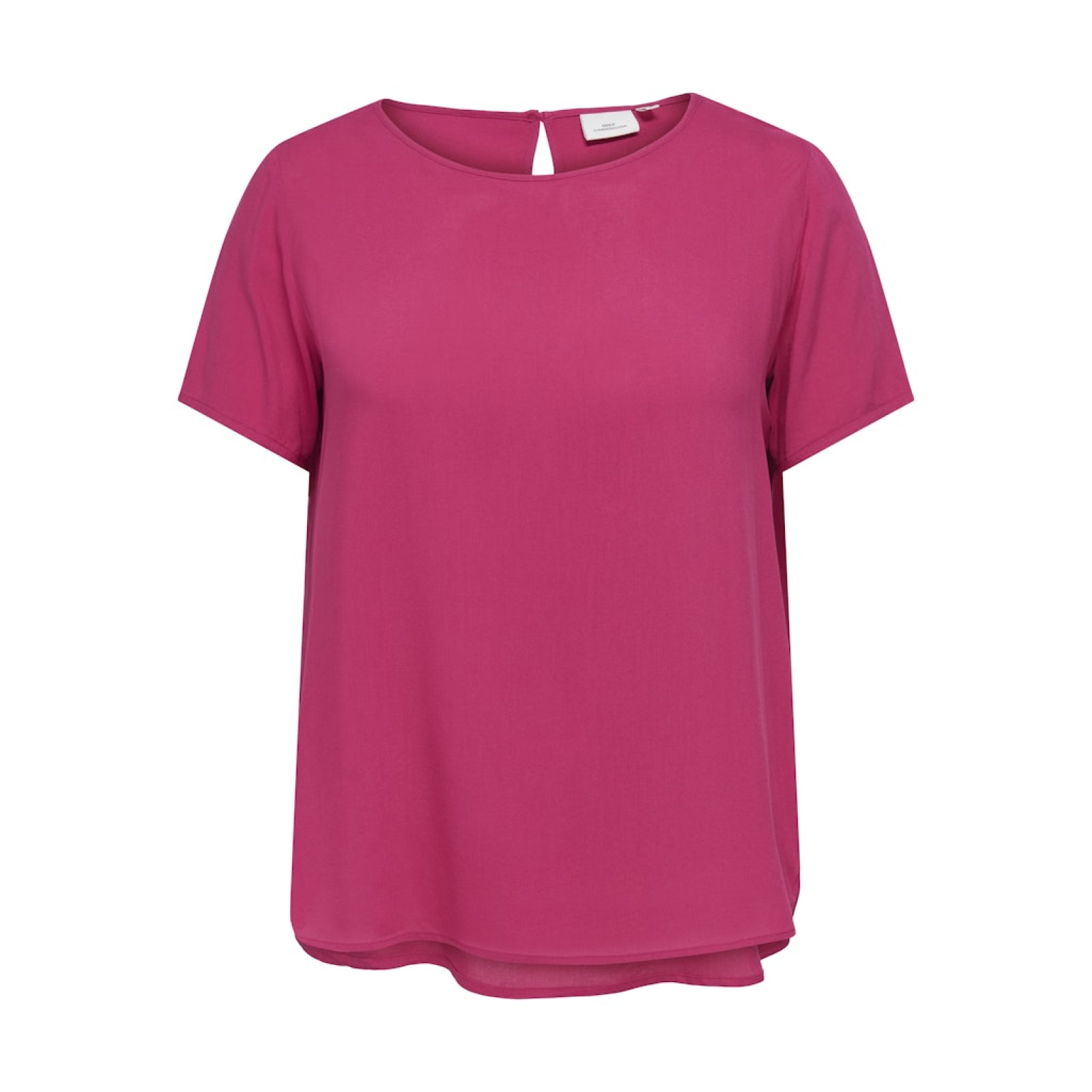 Модель из вискозы с коротким рукавом, круглый вырез горловины сзади на пуговице. Состав - 100%вискоза
