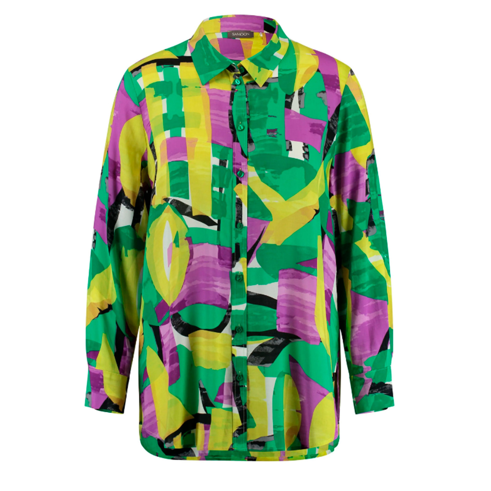 Удлиненная модель рубашечного кроя из вискозы с абстрактным принтом, отложной воротник, застежка на пуговицах, длинный рукав на манжете. Состав - 100%вискоза