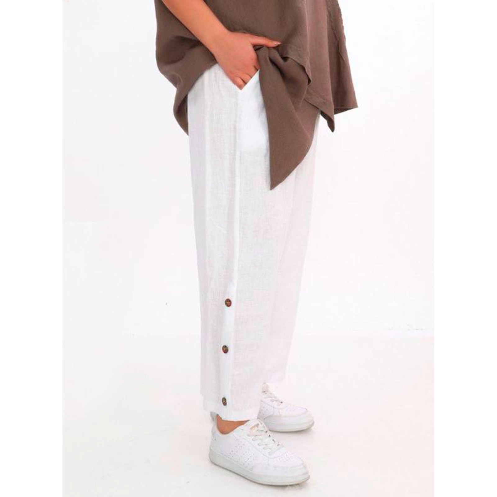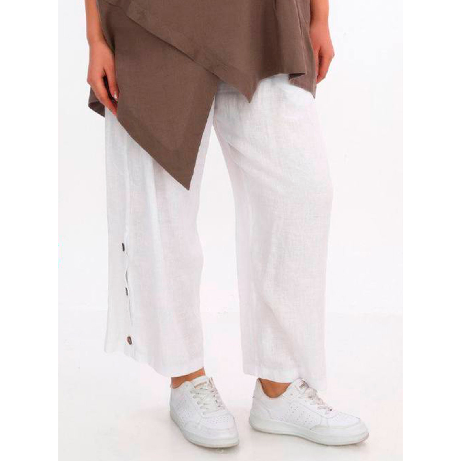 Модель широкого кроя из льна, декоративные пуговица по бокам, карманы. Состав - 100%лен