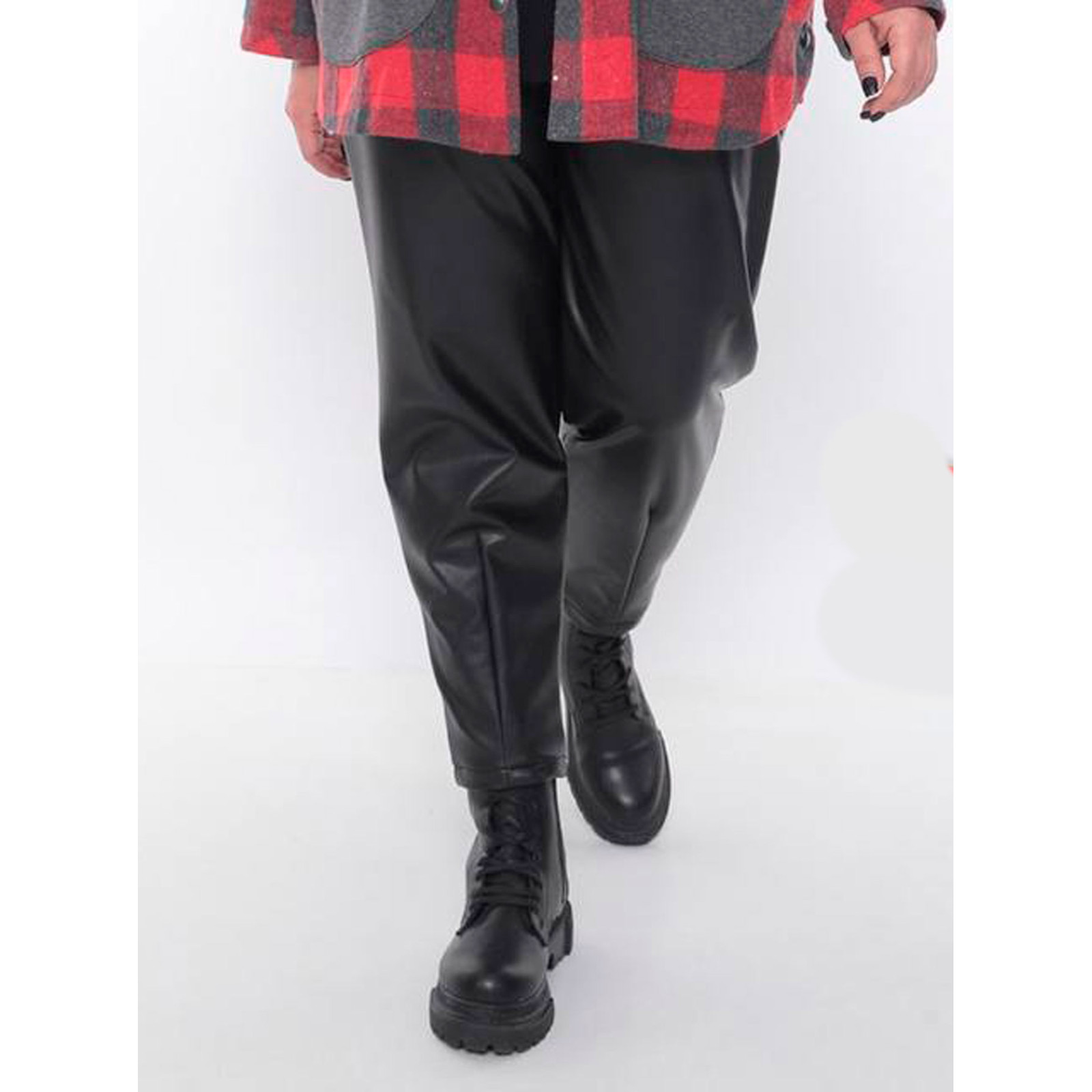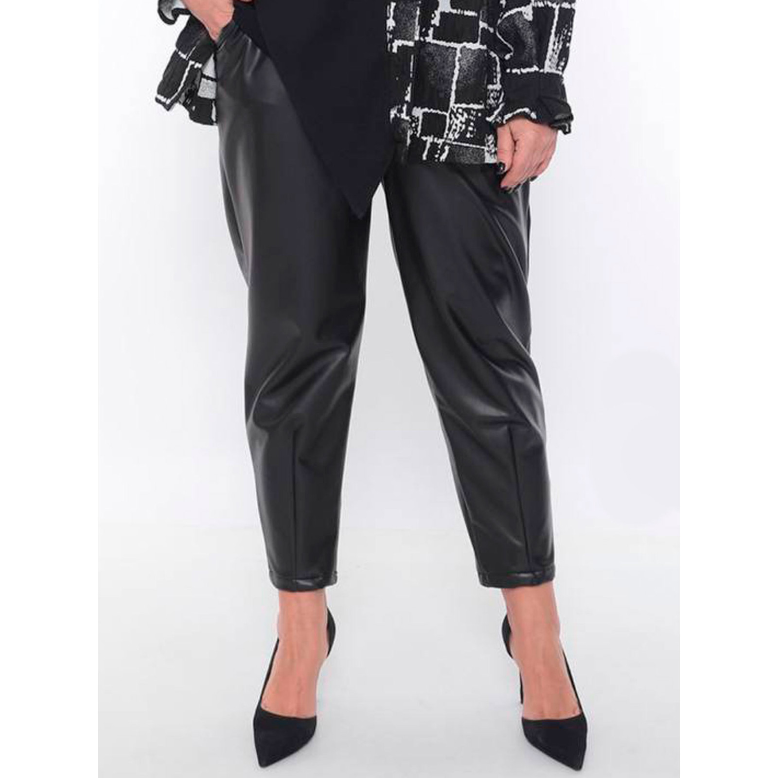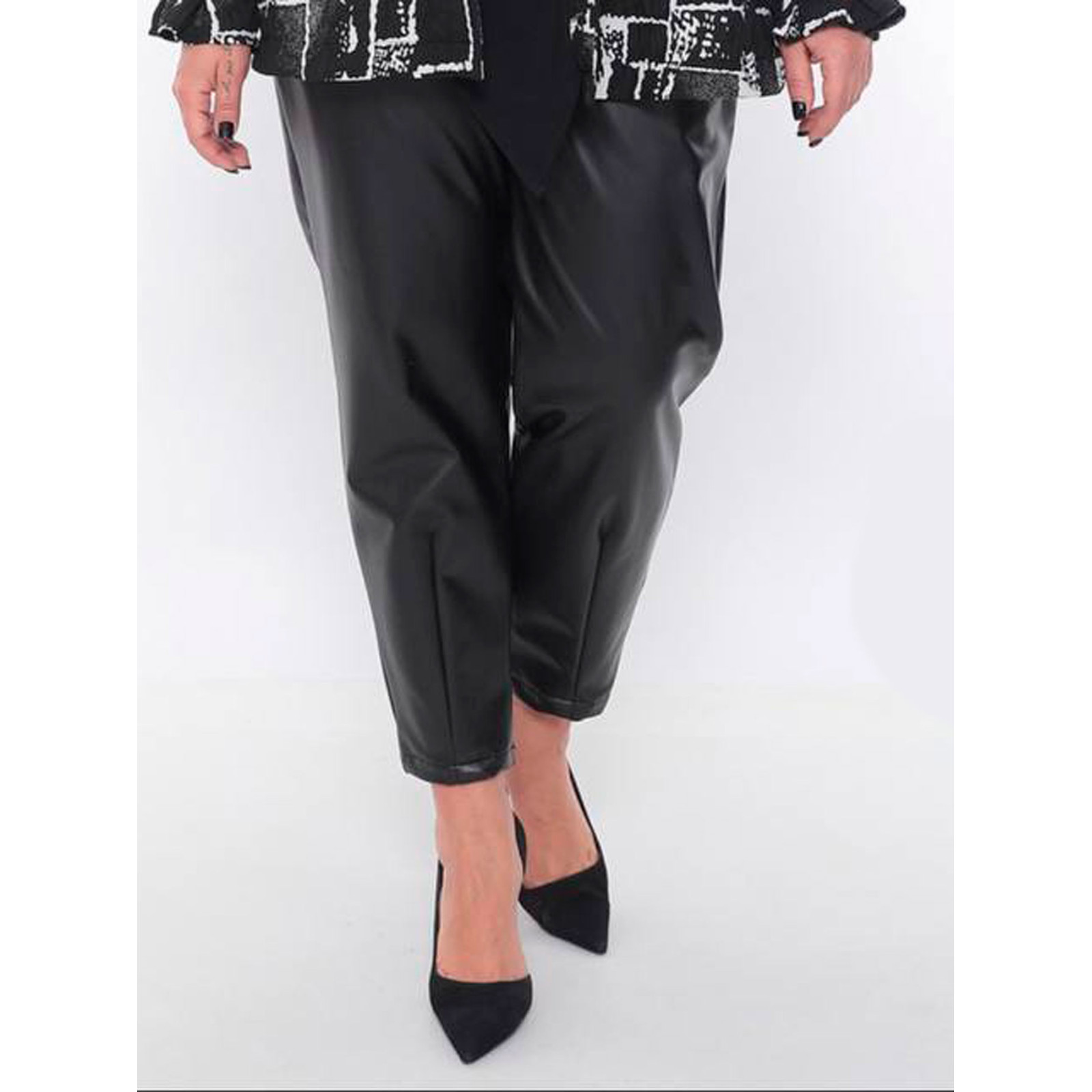 Модель зауженного кроя из материала с эффектом кожи. Состав - 62%полиэстер, 34% полиамид, 4% эластан