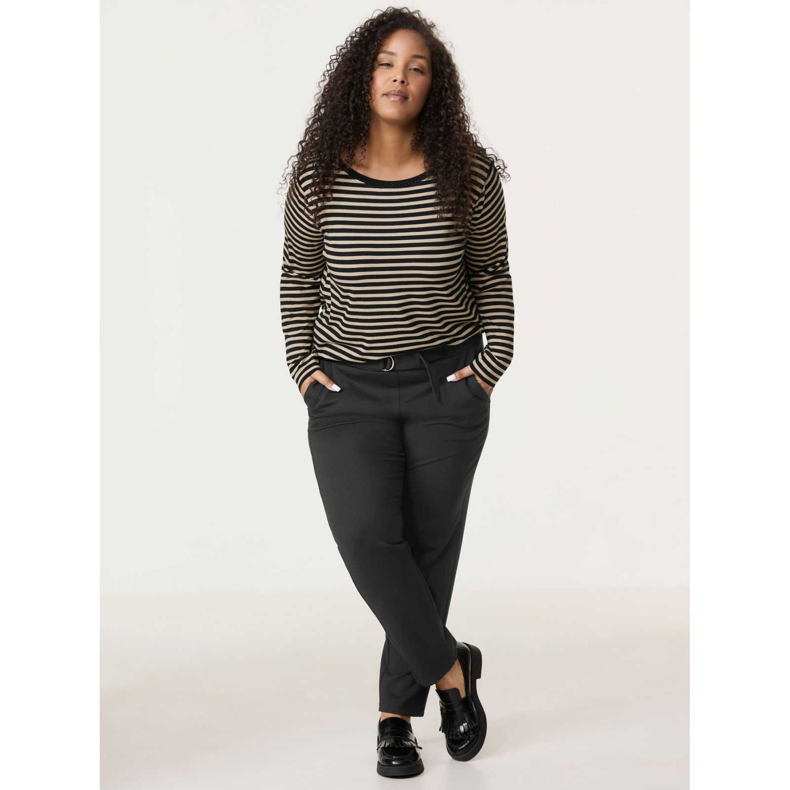 Базовая модель зауженного кроя из смесовой вискозы, пояс со шлевками и ремнем, застежка на молнии, прорезные карманы. Состав - 64%вискоза, 24%полиамид, 12%эластан