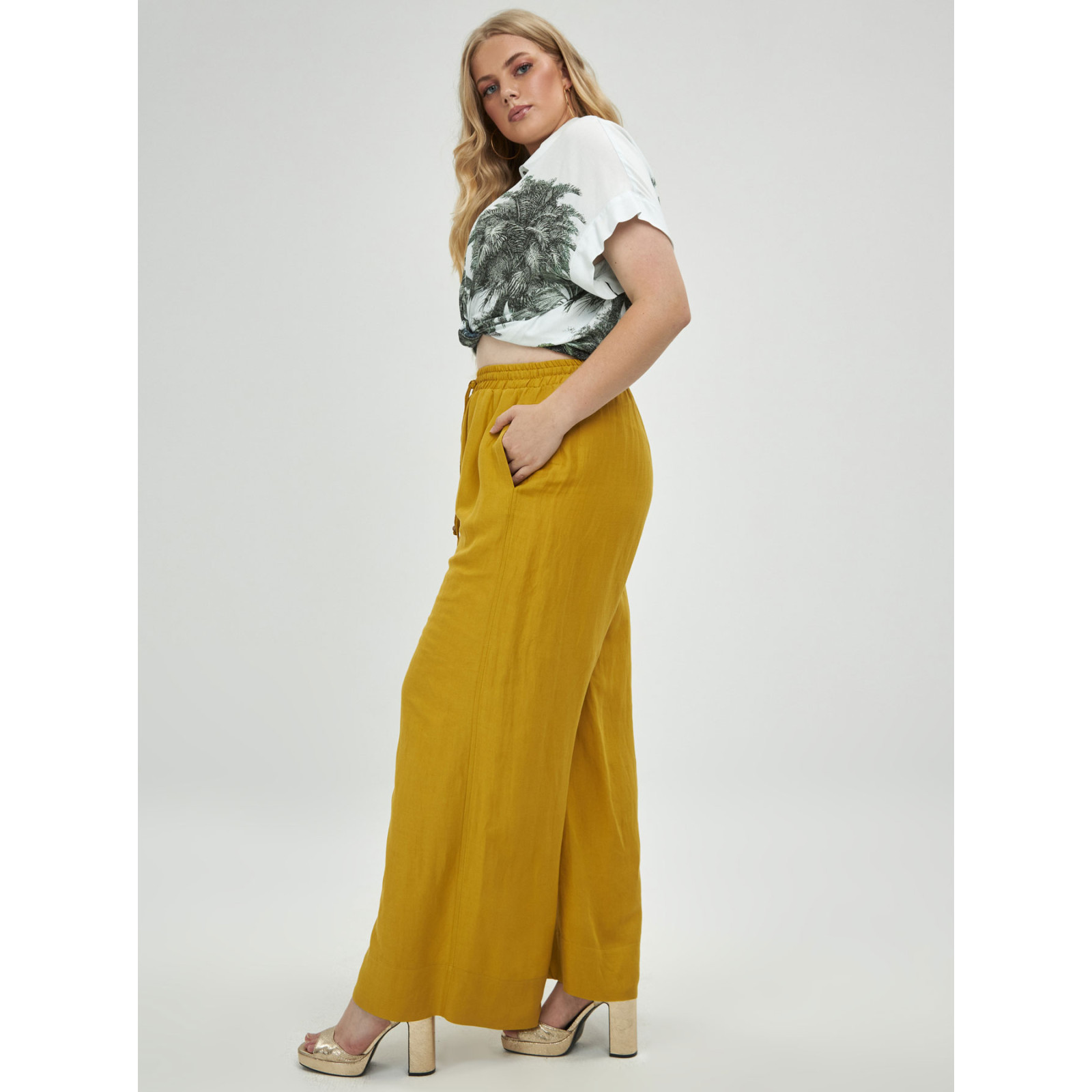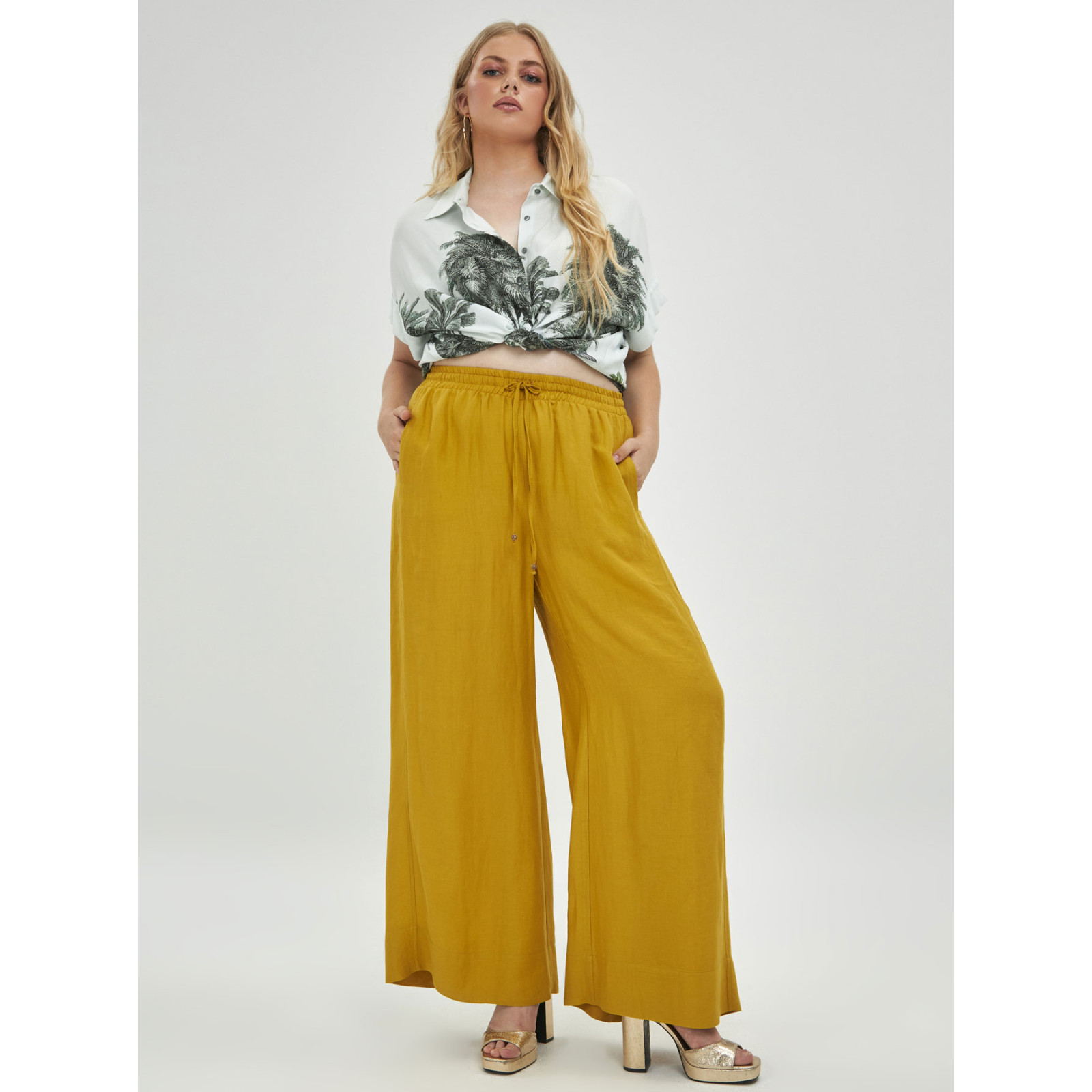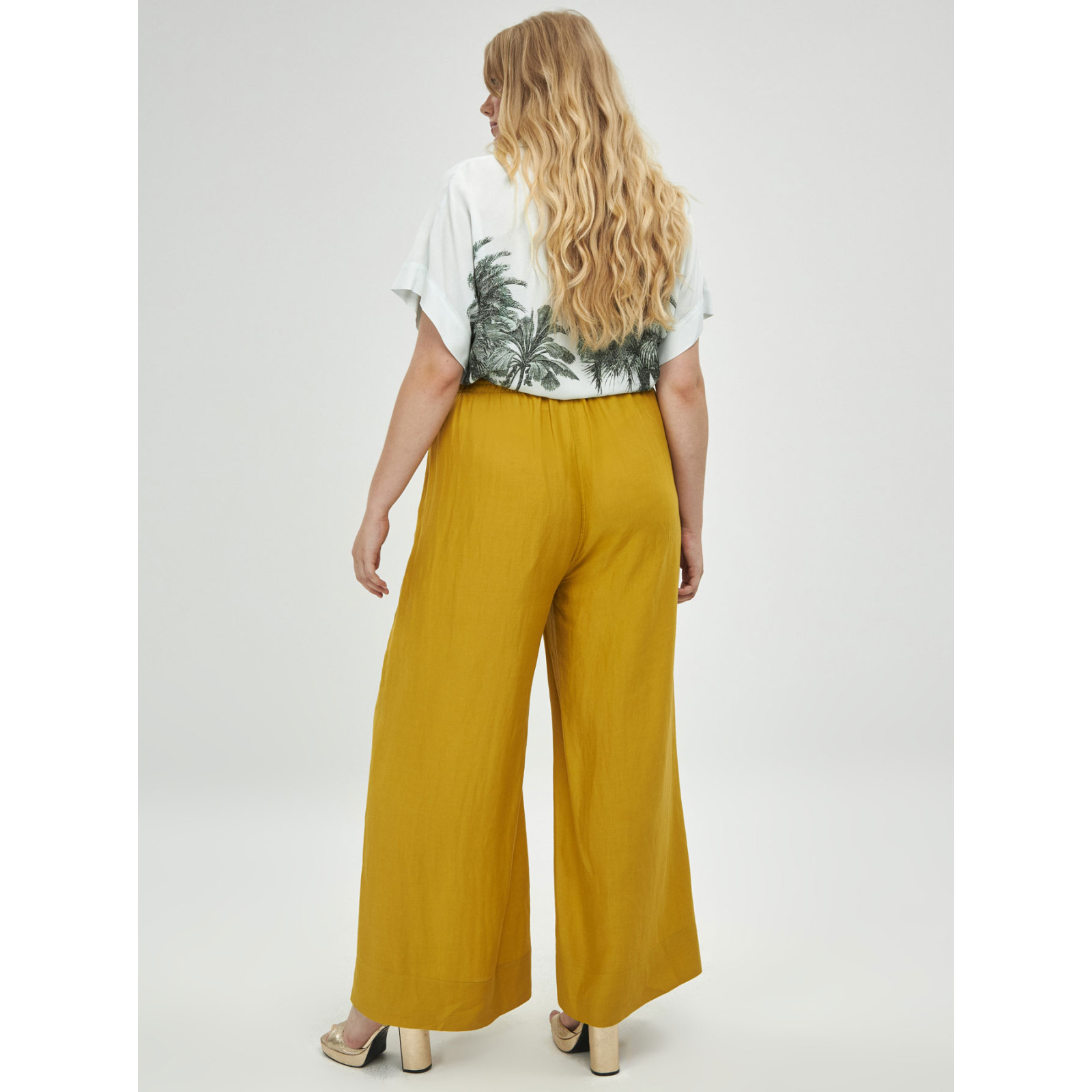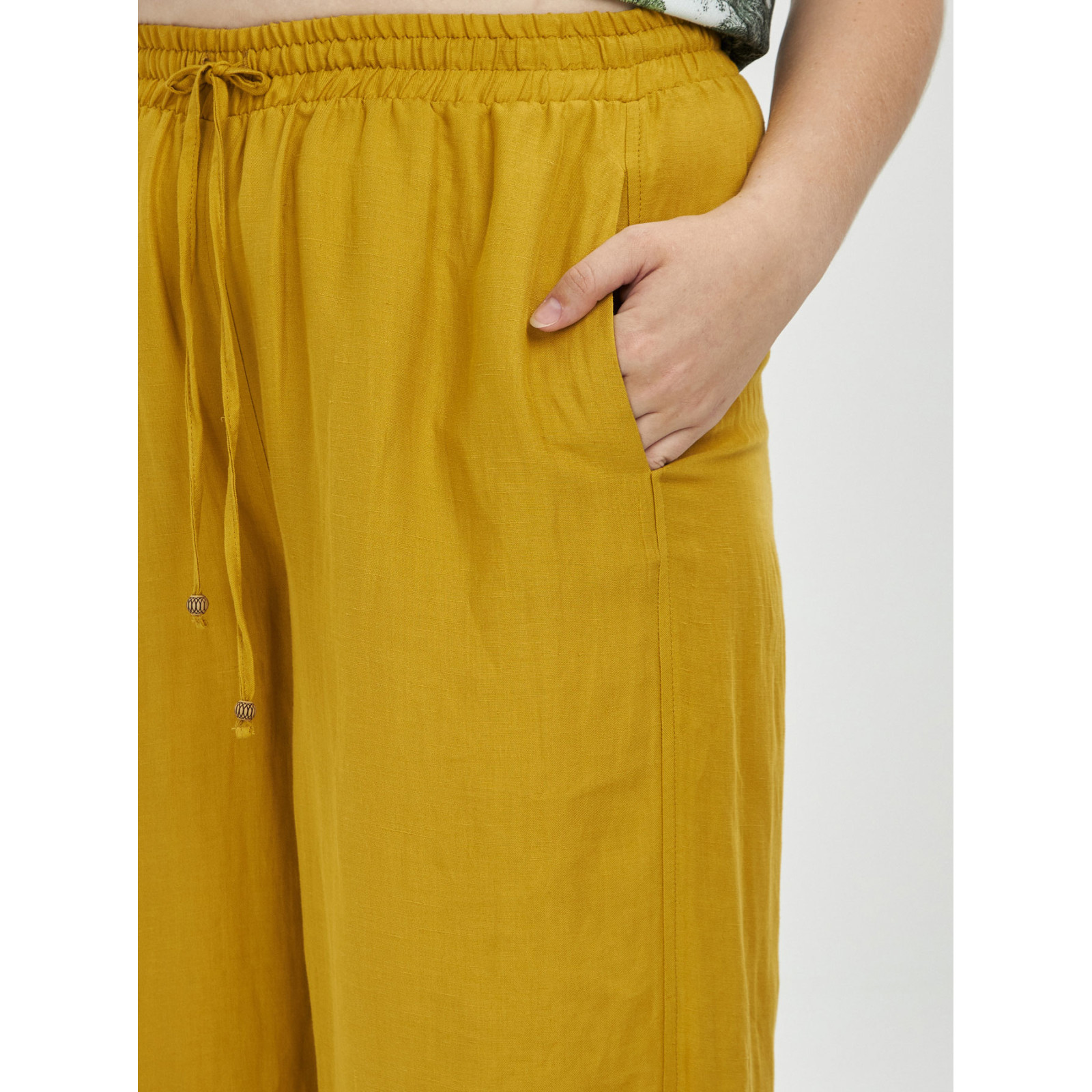 Модель широкого кроя из смесового льна, пояс на эластичной резинке со шнурком, боковые карманы. Состав - 62%вискоза, 38%лен