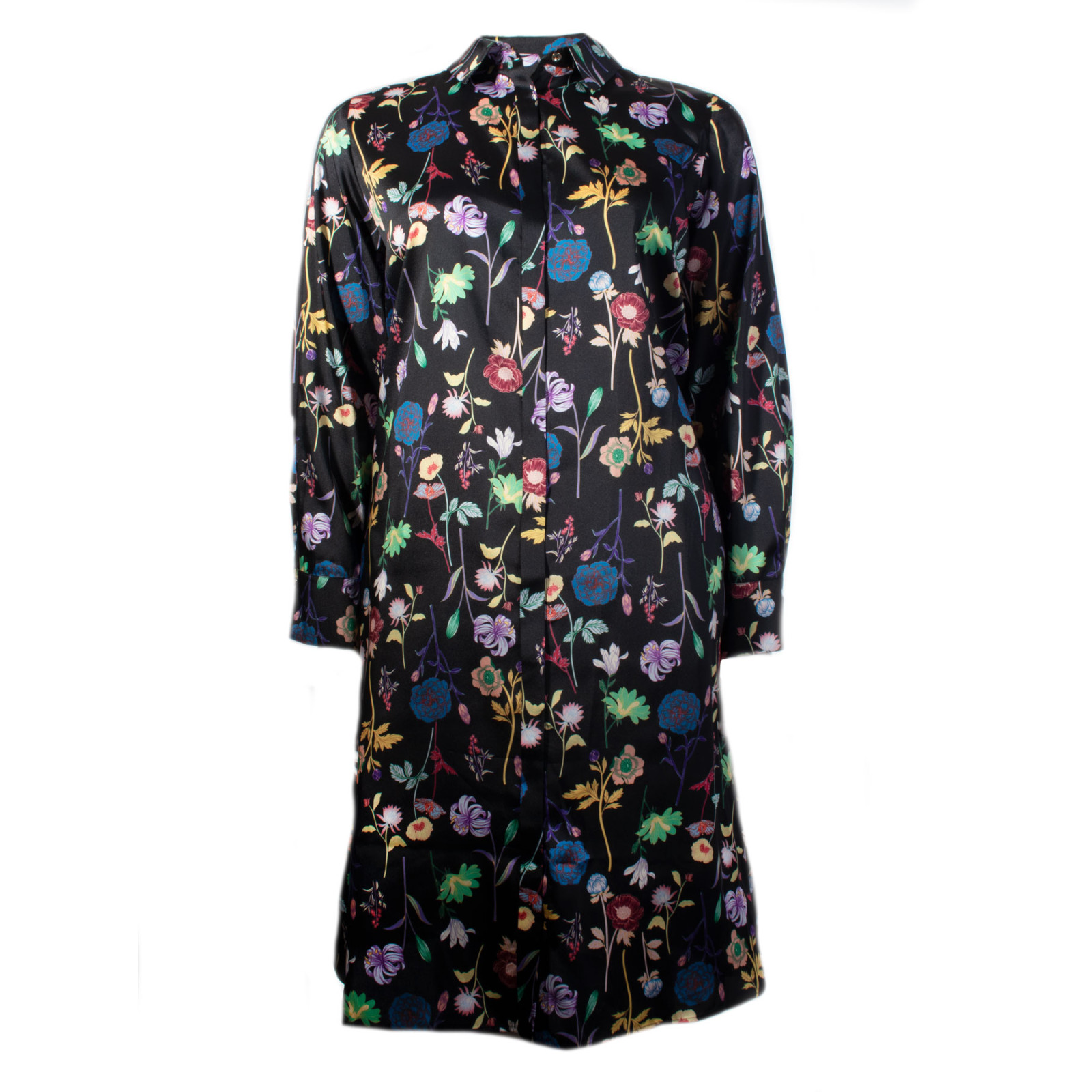 Платье-рубашка из материала с цветочным принтом, отложной воротник, потайная застежка на пуговицах, длинный рукав на манжете. Состав - 100%полиэстер