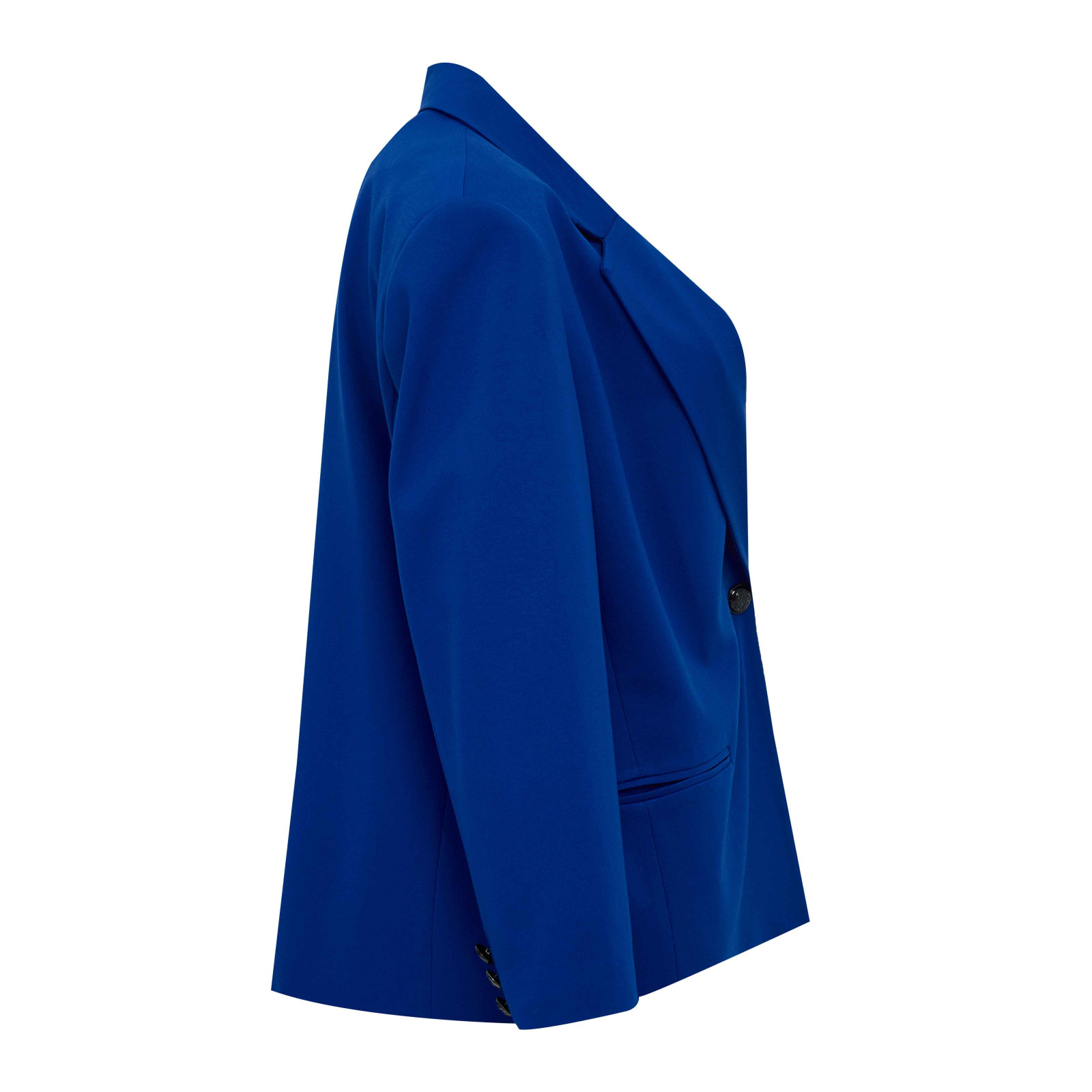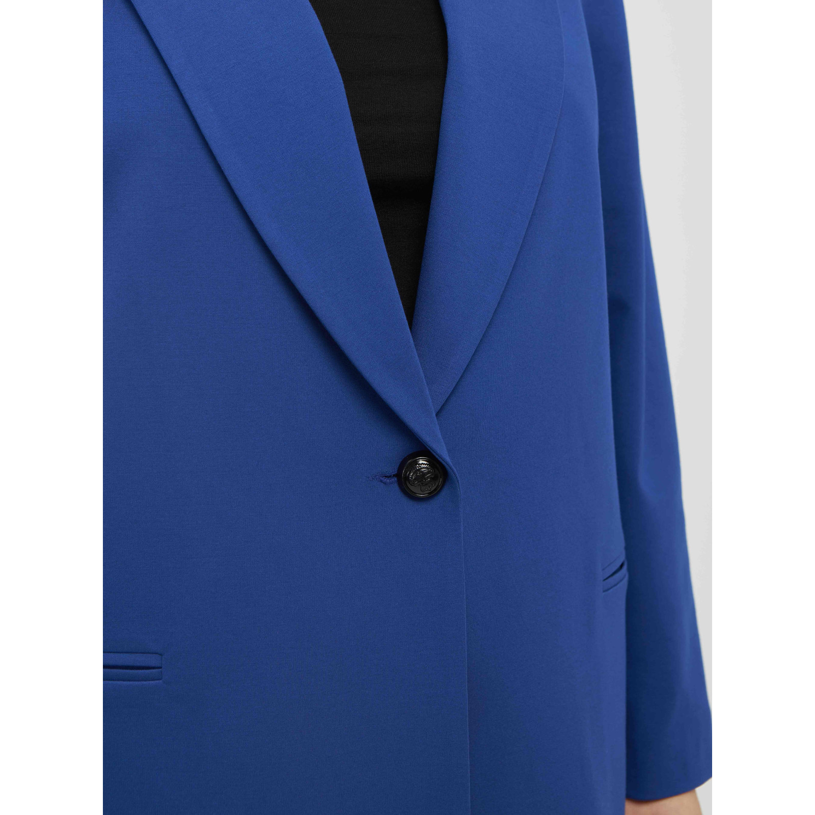 Модель из смесового материала яркого цвета, отложной воротник, застежка на одну пуговицу, длинный рукав, прорезные карманы. Состав - 68%вискоза,27%полиамид,5%эластан